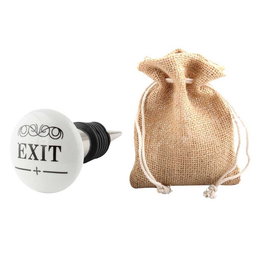 Exit Flat Ceramic Wine Bottle Stopper. Zinc Alloy Wine Bottle Stopper with Attractive Jute Bag Packaging.
