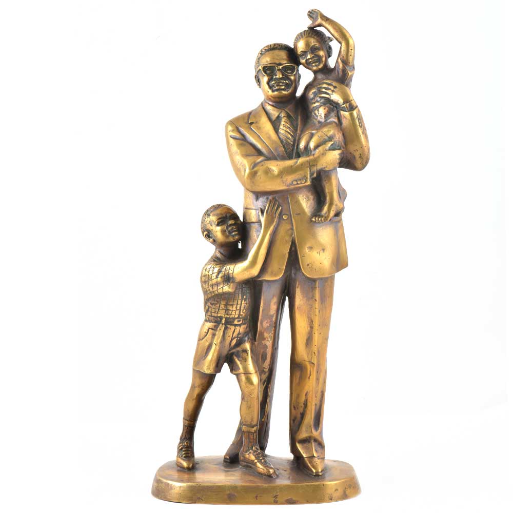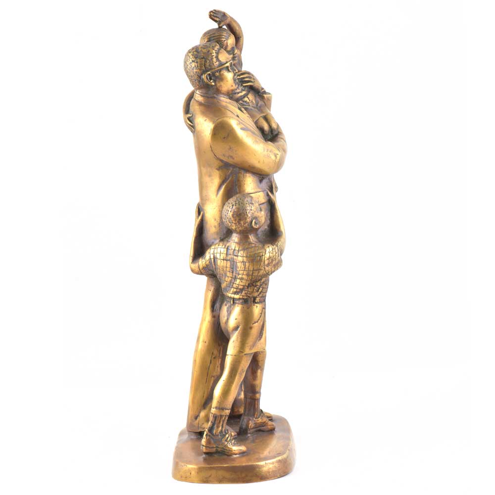 Exquisite Brass Father and Children Statue