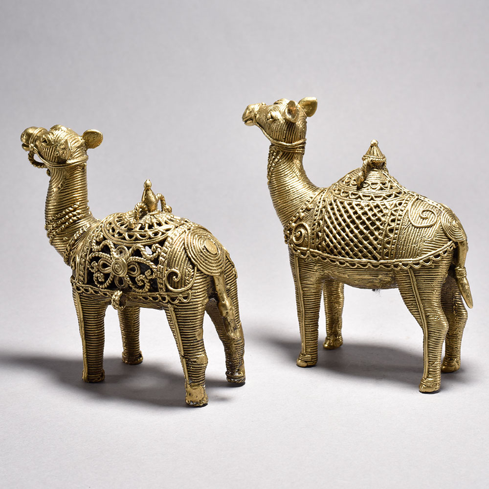 Elevate your space with the captivating essence of ancient tribal artistry. Introducing the Intricate Jali Work Tribal Art Camel Pair, a mesmerizing metal sculpture that brings the rich cultural heritage of Orissa to life.These intricately detailed camel statues are more than just decor - they're a testament to the enduring creativity of India's tribal communities. Display this breathtaking piece in your home or office to infuse your space with the allure of ancient artistry. Whether you're a collector of fine tribal art or simply seeking a captivating conversation starter, the Intricate Jali Work Tribal Art Camel Pair is a must-have addition. Meticulously crafted with traditional jali techniques This timeless piece is handcrafted by skilled artisans using time-honored techniques, ensuring each creation is truly one of a kind. Its versatile design makes it suitable for living rooms, bedrooms, offices, or meditation spaces, bringing a sense of heritage and style wherever it is displayed.