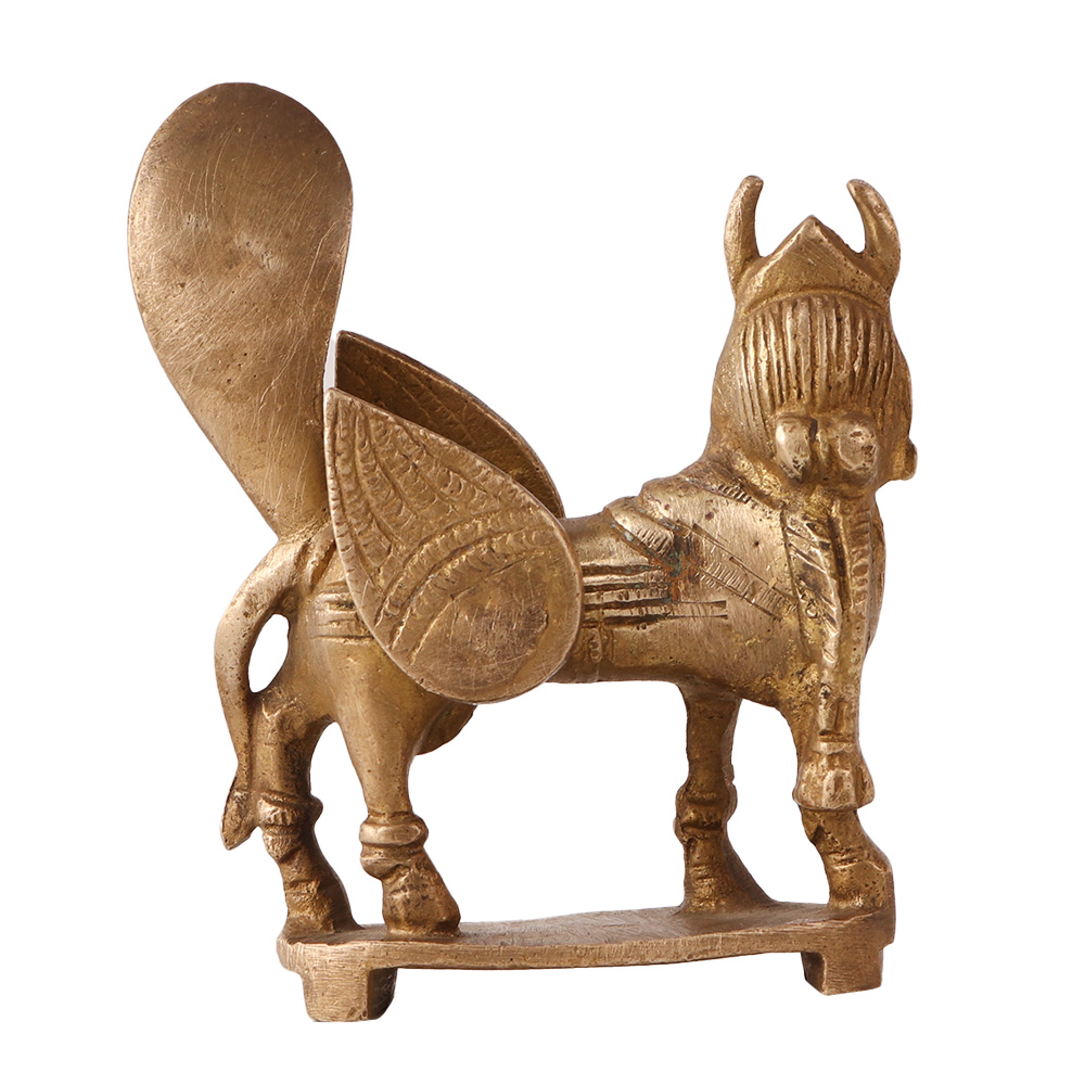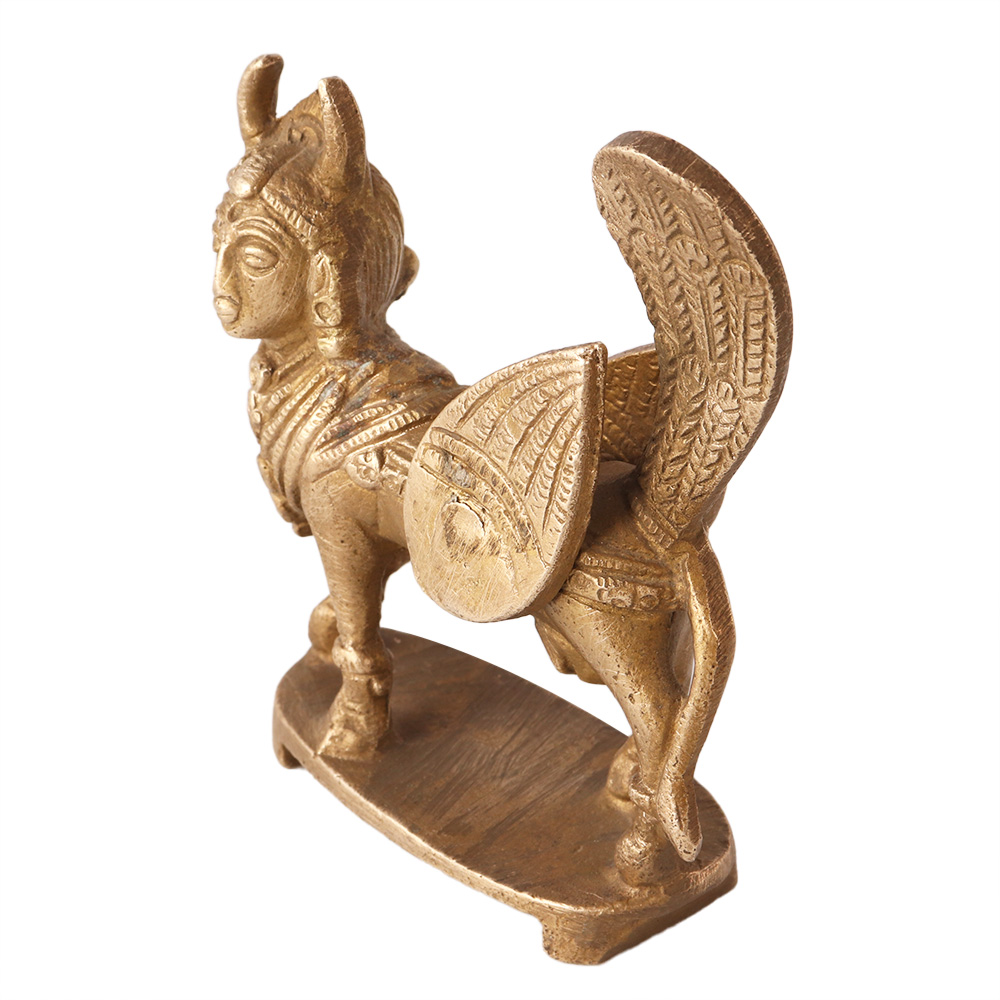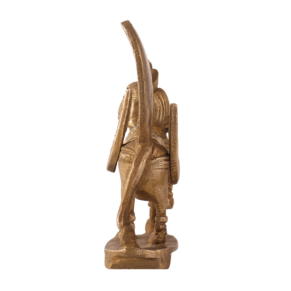 Your family will undoubtedly experience happiness and wealth thanks to this majestic Kamadhenu statue. This lovely statue decor brass sculpture depicts the bovine goddess in the manner of her representation in iconographs. The statue's delicate features and ostentatious adornments were meticulously made with the head of a woman, the wings of an eagle, and the body of a cow. The entire piece has a stunning patina, which adds to its vintage beauty. The Kamadhenu is a well-known all-providing and nurturing deity who is sometimes compared to the earth goddess. The pooja room can be used to worship this lovely idol. Additionally, this famous statues can be utilised into home décor arrangements to add divinity to your interiors.