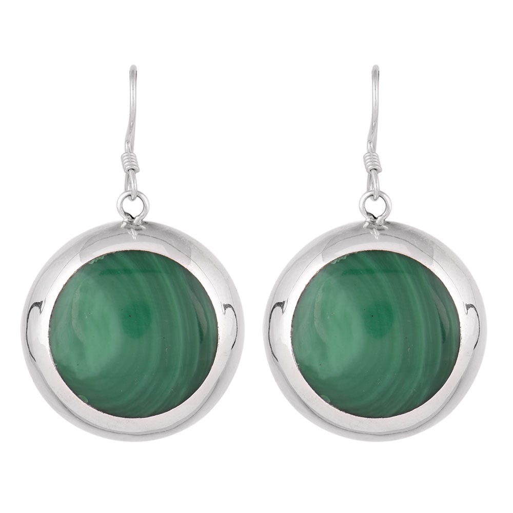 Handmade 92.5 Sterling Silver Fancy Oval dangle earrings for everyday wear with single Round Malachite drrop earrings for girls and women the eternal classical design these vintage earrings will complement any occasion ethnic wear/ daily / college / party wear.
