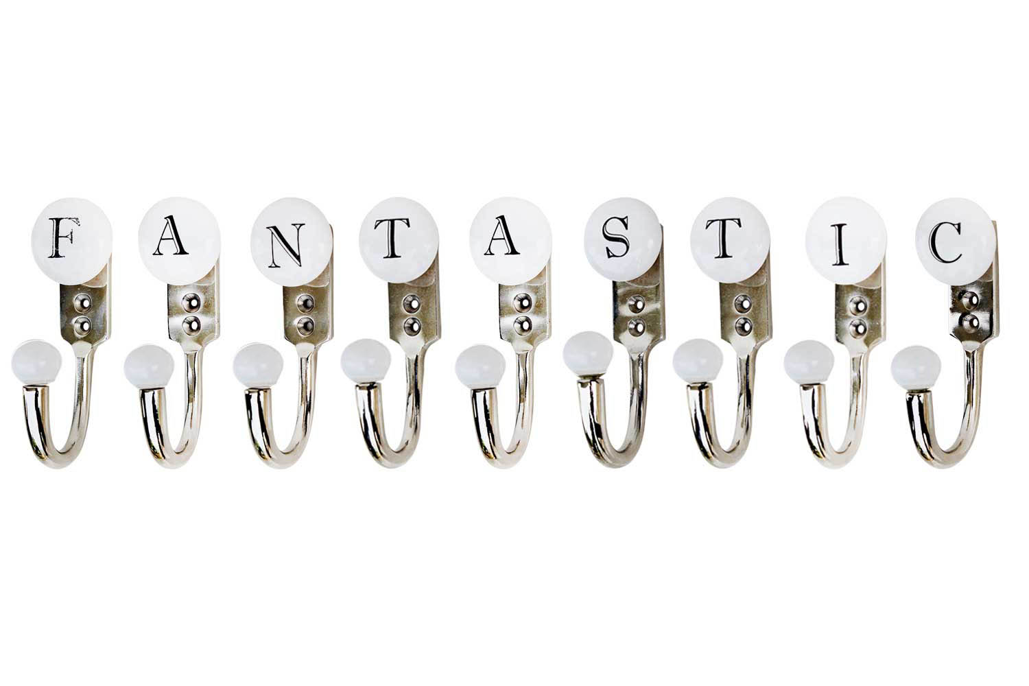 FANTASTIC white and black alphabet hooks (combo pack). When put on wall or cabinet it is an art in itself. This hook is strong enough to hold your keys, tea cups, hand towels, cloths etc.