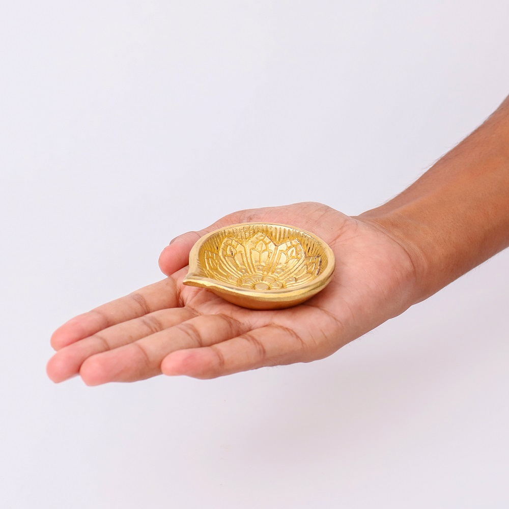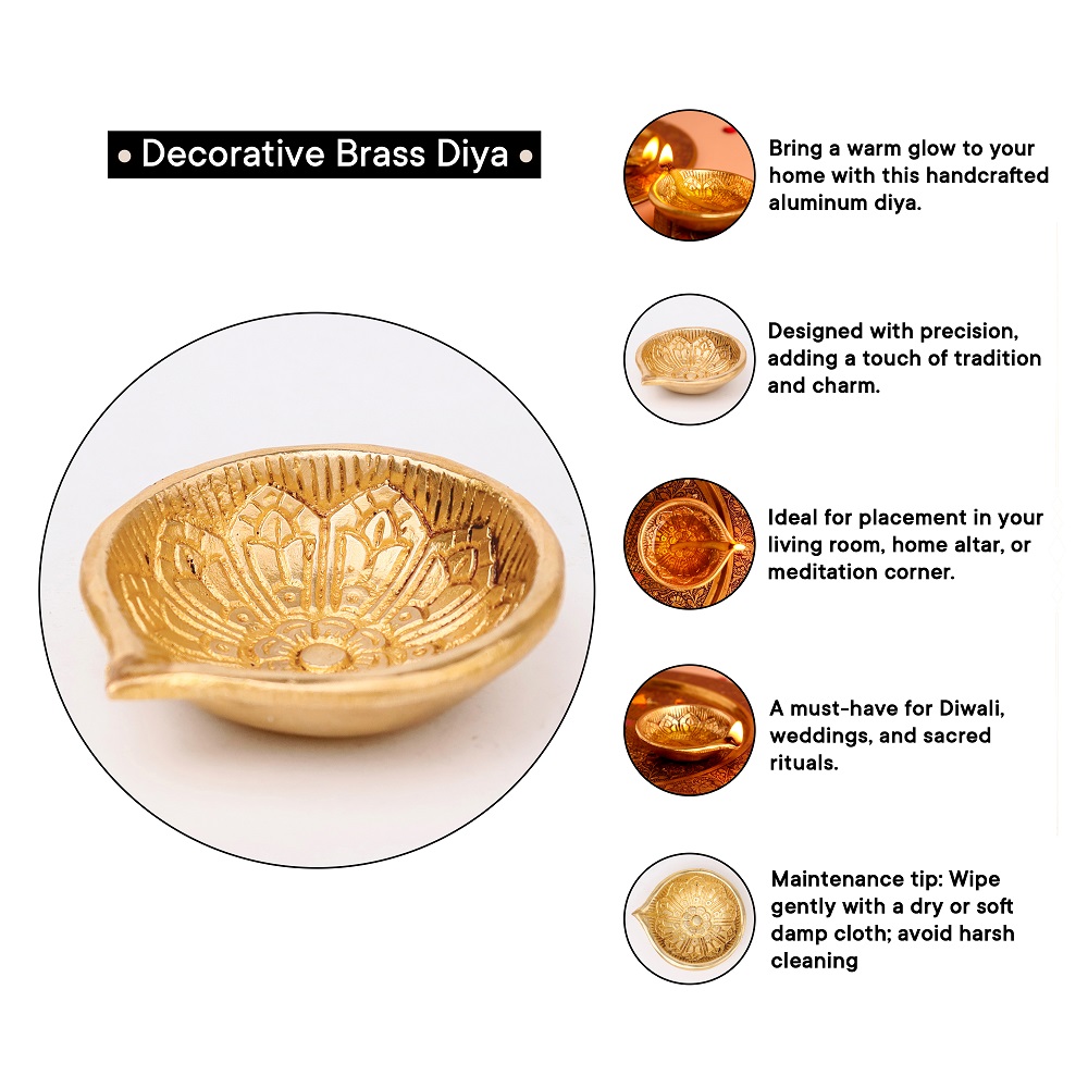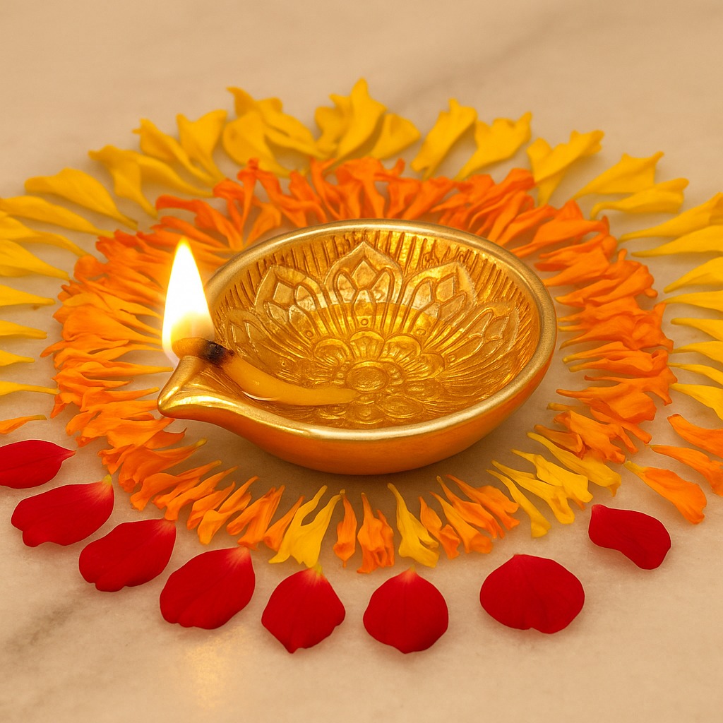 Celebrate the spirit of light and devotion with this Big Flower Engraved Brass Diya, a traditional lamp that brings timeless artistry to your festive rituals. Shaped with a bold floral pattern and finished in radiant gold, this diya reflects the sacred beauty of Hindu traditions. Whether for daily worship or grand celebrations, it adds both elegance and auspicious energy to your space.