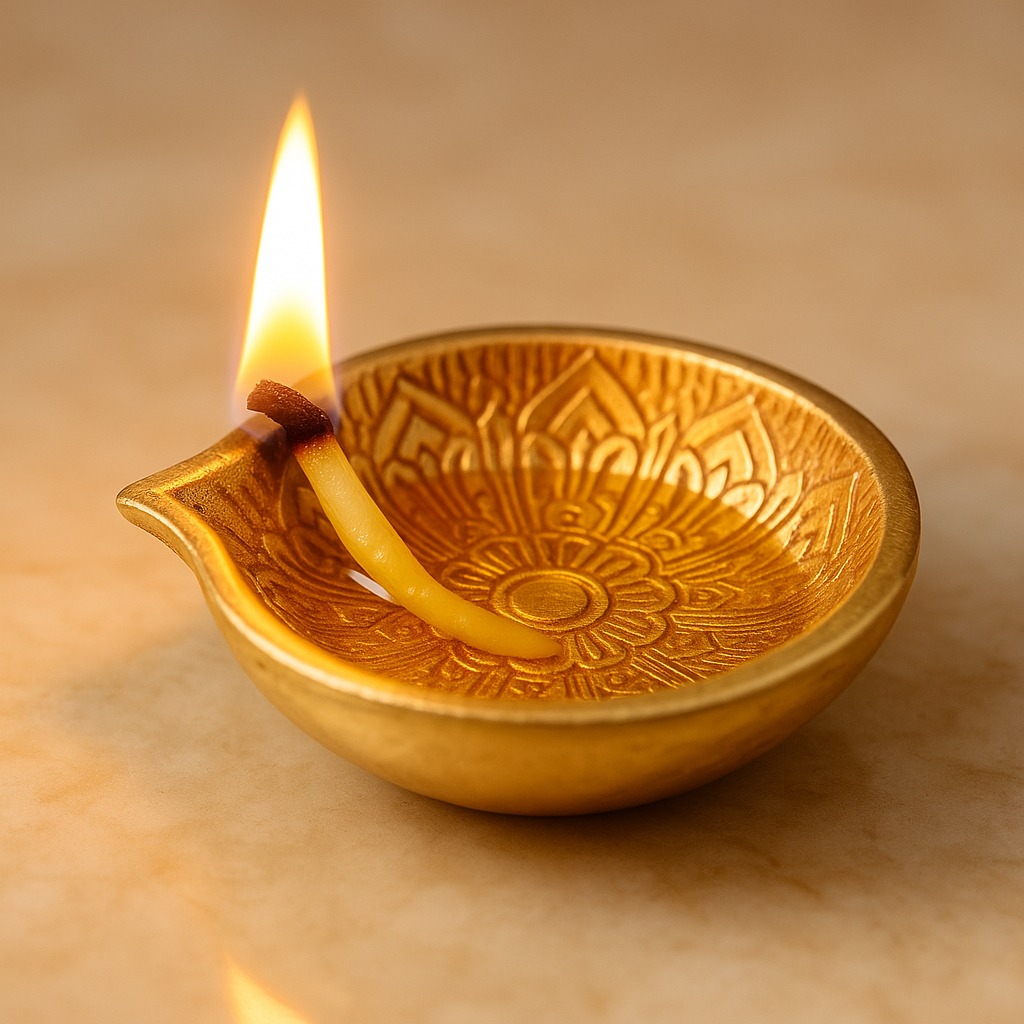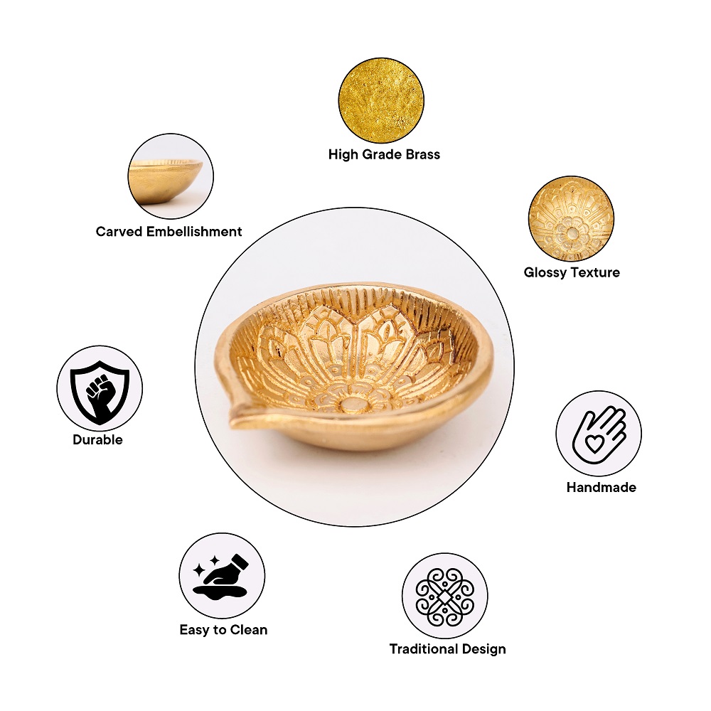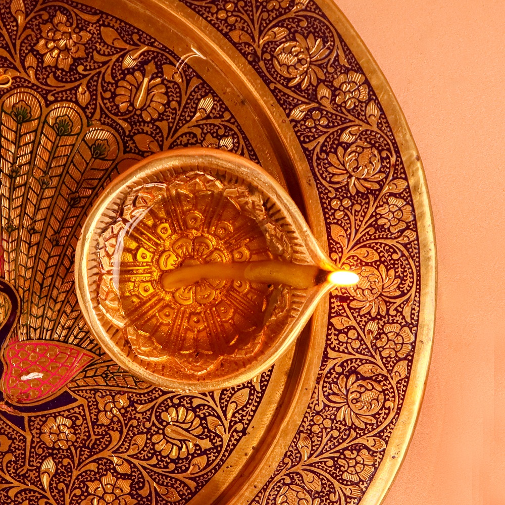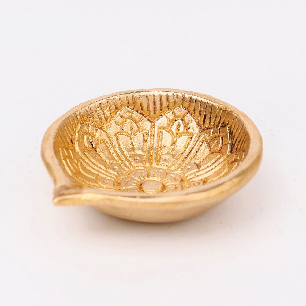 Celebrate the spirit of light and devotion with this Big Flower Engraved Brass Diya, a traditional lamp that brings timeless artistry to your festive rituals. Shaped with a bold floral pattern and finished in radiant gold, this diya reflects the sacred beauty of Hindu traditions. Whether for daily worship or grand celebrations, it adds both elegance and auspicious energy to your space.