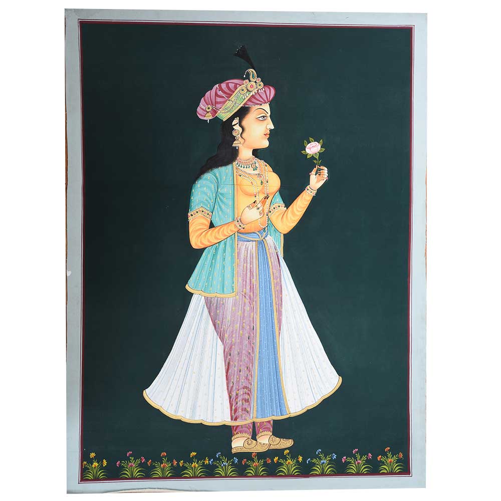 This fine Canvas painting of Indian Mughal queen holding a flower In hand can be used as a great gift idea for your relatives, friends and family.