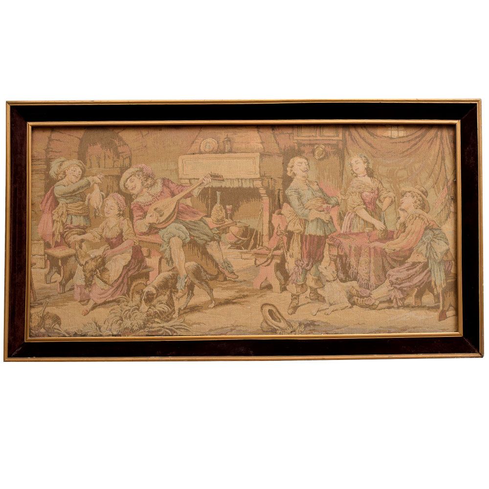 Step into a world of refined sophistication with this breathtaking work of art. Lose yourself in the timeless elegance of the tapestry's design, where every thread and every hue has been meticulously placed to create a truly mesmerizing visual experience. As you gaze upon the scene, you can almost hear the lively melodies and feel the joyous energy radiating from the figures. This is more than just a piece of décor - it's a portal to a bygone era, a testament to the enduring artistry of Europe's most skilled craftspeople. Whether you're a seasoned collector or simply someone who appreciates the beauty of fine art, this tapestry will captivate and inspire you. Hang it in your living room, your study, or any space that deserves a touch of refined sophistication. With its ability to elevate any environment, this exquisite work of art is sure to become the centerpiece of your home and a conversation starter for all who behold its timeless elegance.