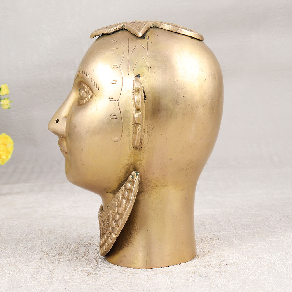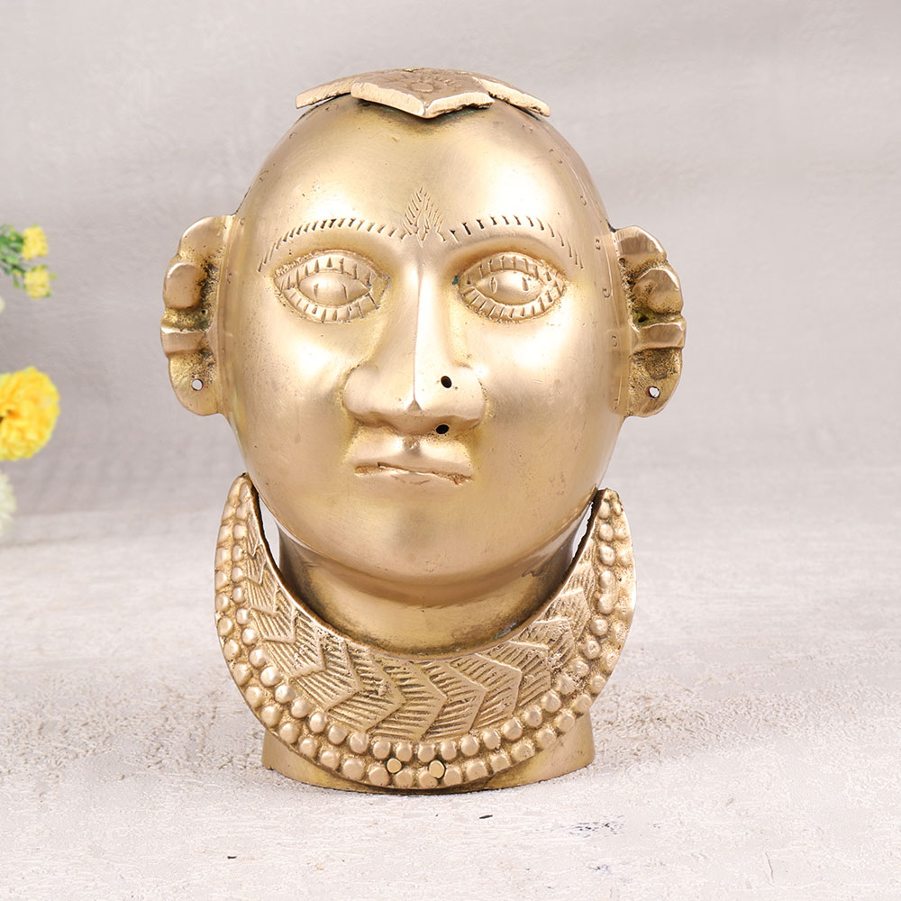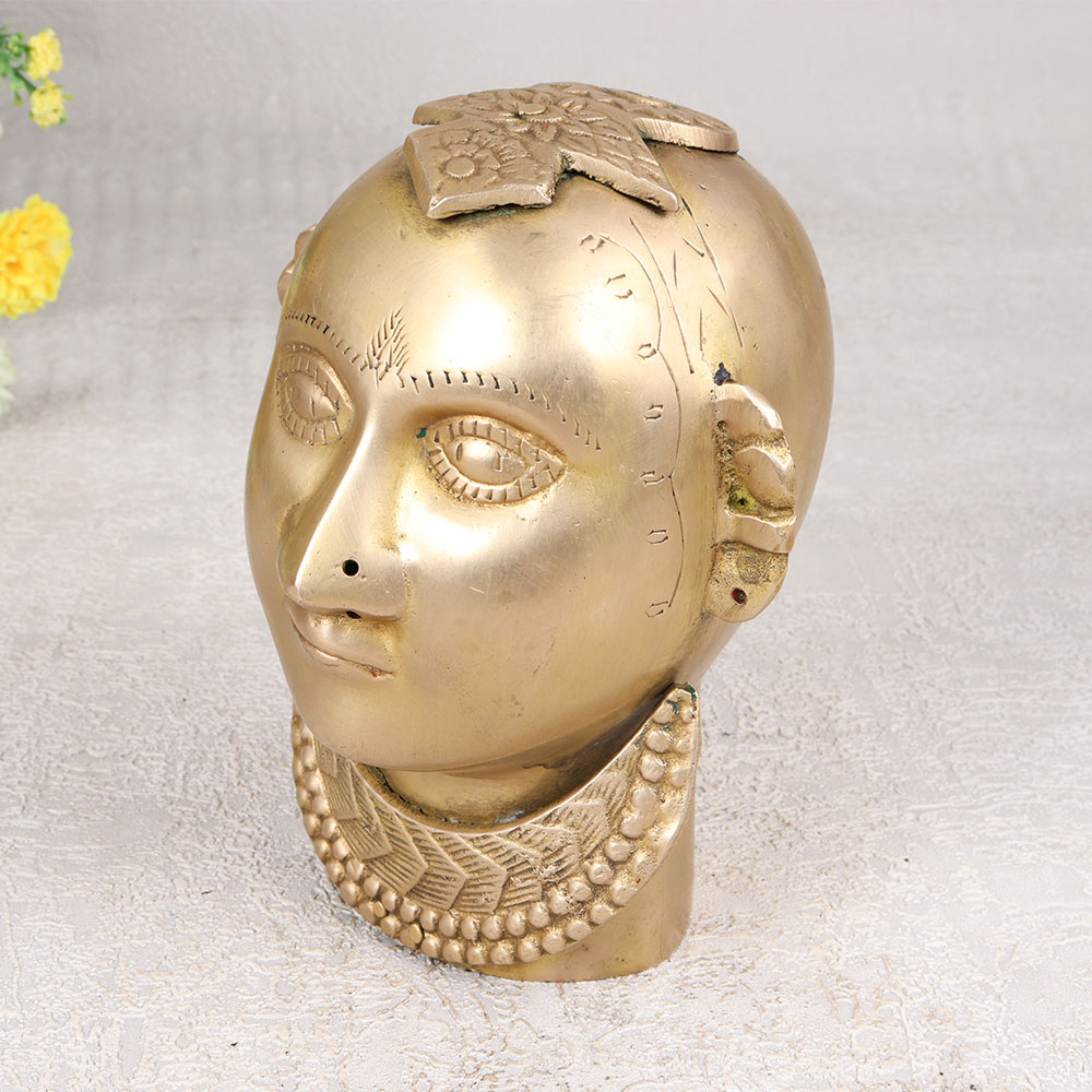 Buy a Vintage Brass Gauri Head online that is a divine embodiment of Goddess Parvati crafted with precision and devotion by highly skilled Indian artisans from Gujarat. This masterpiece is meticulously handmade from high-quality white Brass, adorned with a lustrous brown finish that exudes a timeless charm. This Gauri head, with its intricate details and vintage allure, serves as a captivating addition to any space. Perfect for home, office, restaurant, hotel, or cafe prayer rooms, it seamlessly blends spirituality with aesthetic appeal. Whether placed for worship or as an ornamental piece, its versatile nature lends itself to diverse settings. Emanating the rich cultural heritage of Gujarat, this artefact transcends time, making it an ideal addition to any vintage collection. Celebrate special, festive, or auspicious occasions by gifting this divine creation to your loved ones, symbolizing blessings, love, and the enduring craftsmanship of Indian artistry.