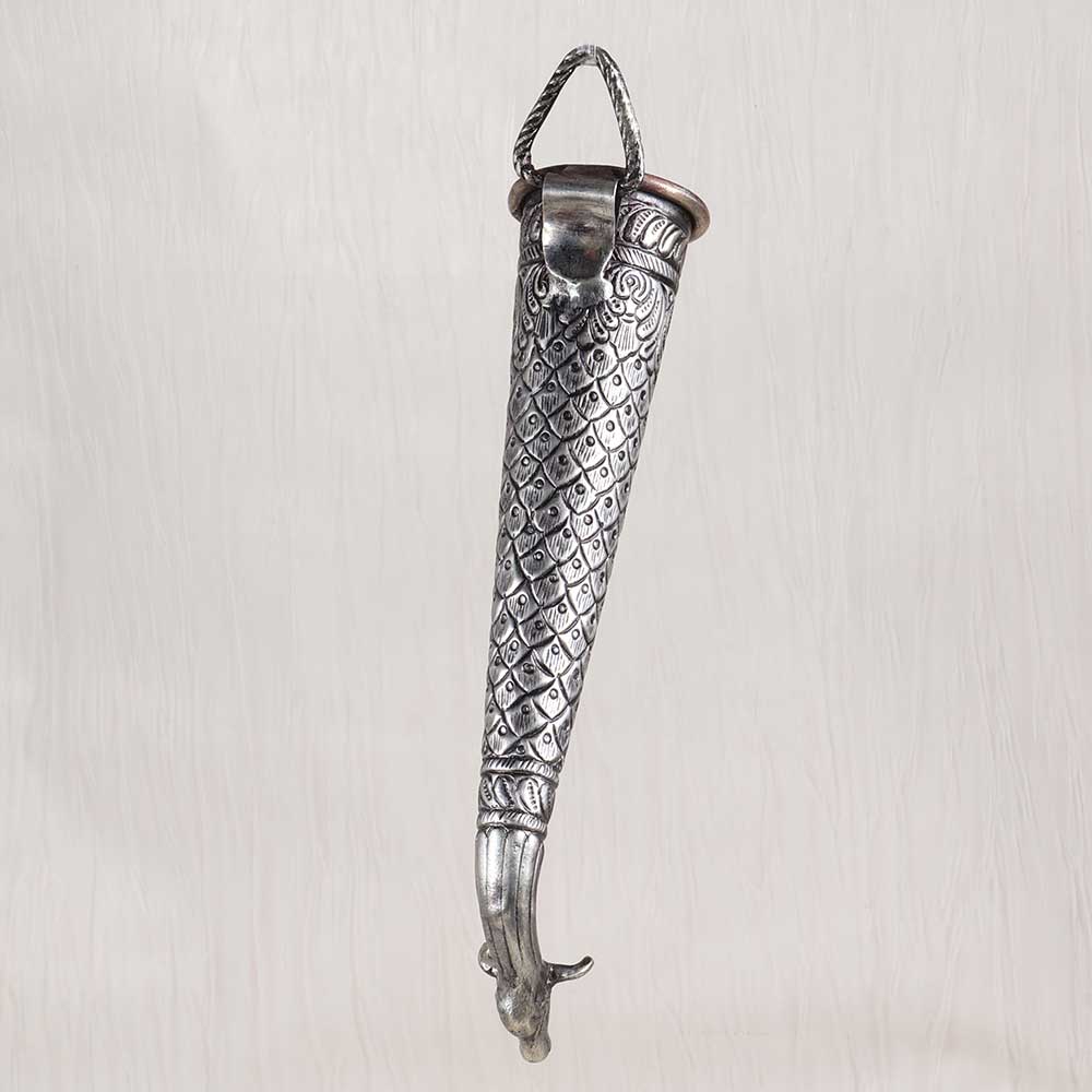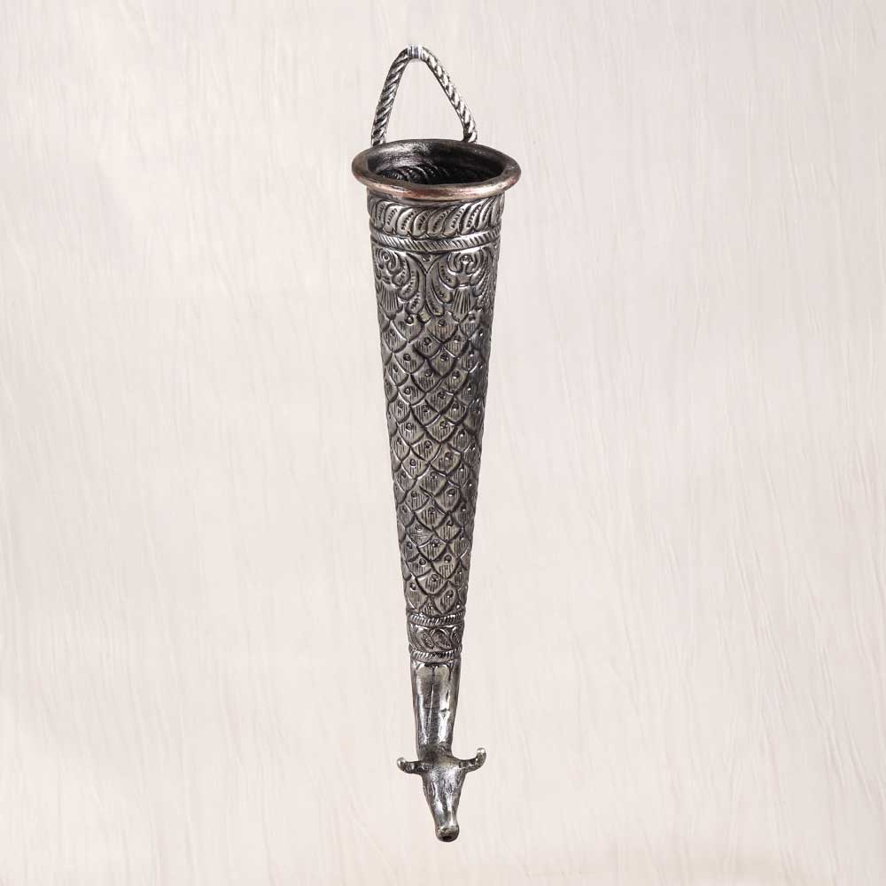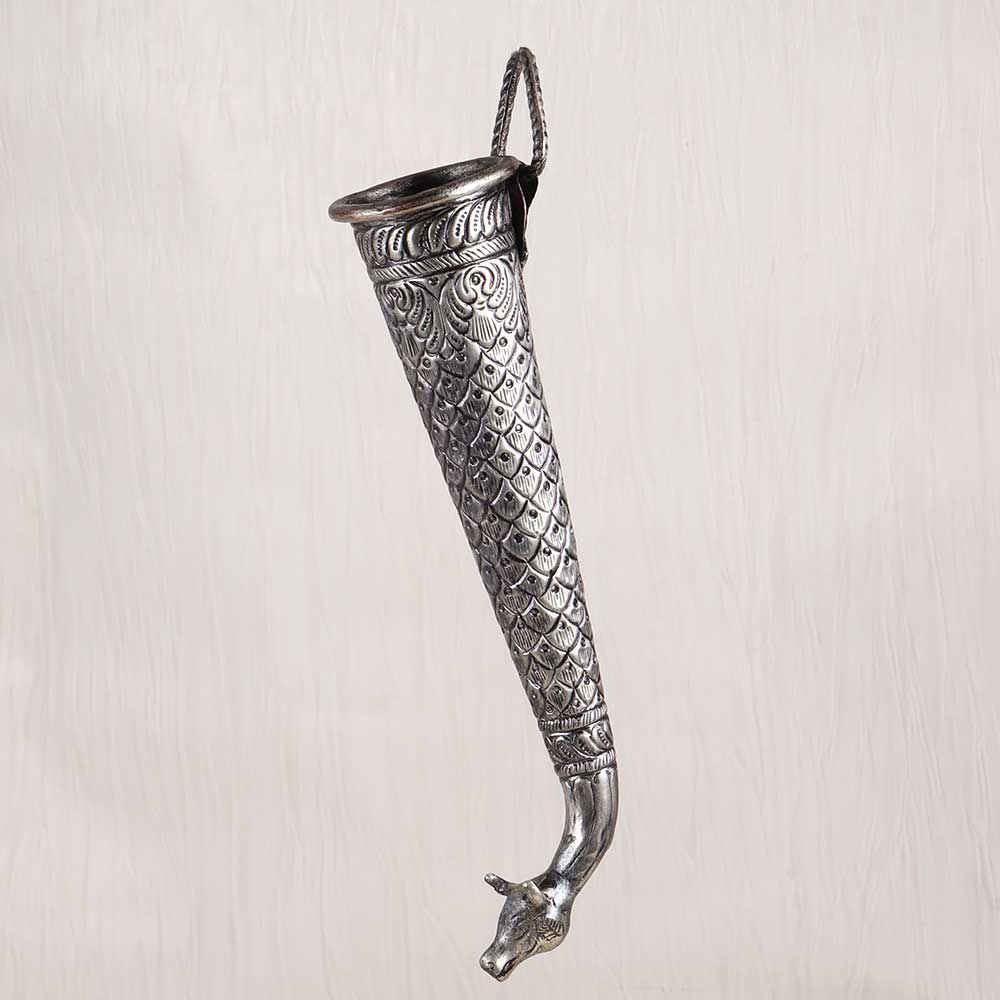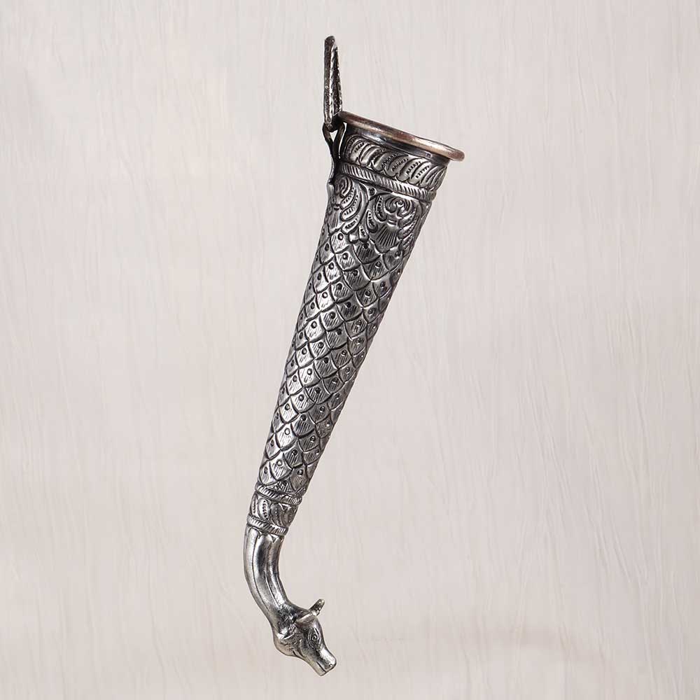 Transport yourself to the temples of ancient India with this exquisite vintage brass Nandi head pipe. The beautifully crafted Nandi head, representing the sacred bull mount of Lord Shiva, makes this pipe far more than just a utensil. This vintage Nandi head pipe allows you to honor Lord Shiva and connect with your spiritual roots through sacred Hindu rituals. Pouring water or milk over the Shivling is a meaningful act of worship, and this pipe's regal Nandi head design enhances the experience. Give your puja a touch of antique elegance while remaining true to tradition with this ornate brass pipe. For devotees of Lord Shiva seeking a puja pipe that combines stunning Indian craftsmanship with spiritual symbolism, this vintage Nandi head pipe is the perfect choice. Display it prominently in your puja room as a testament to your faith.