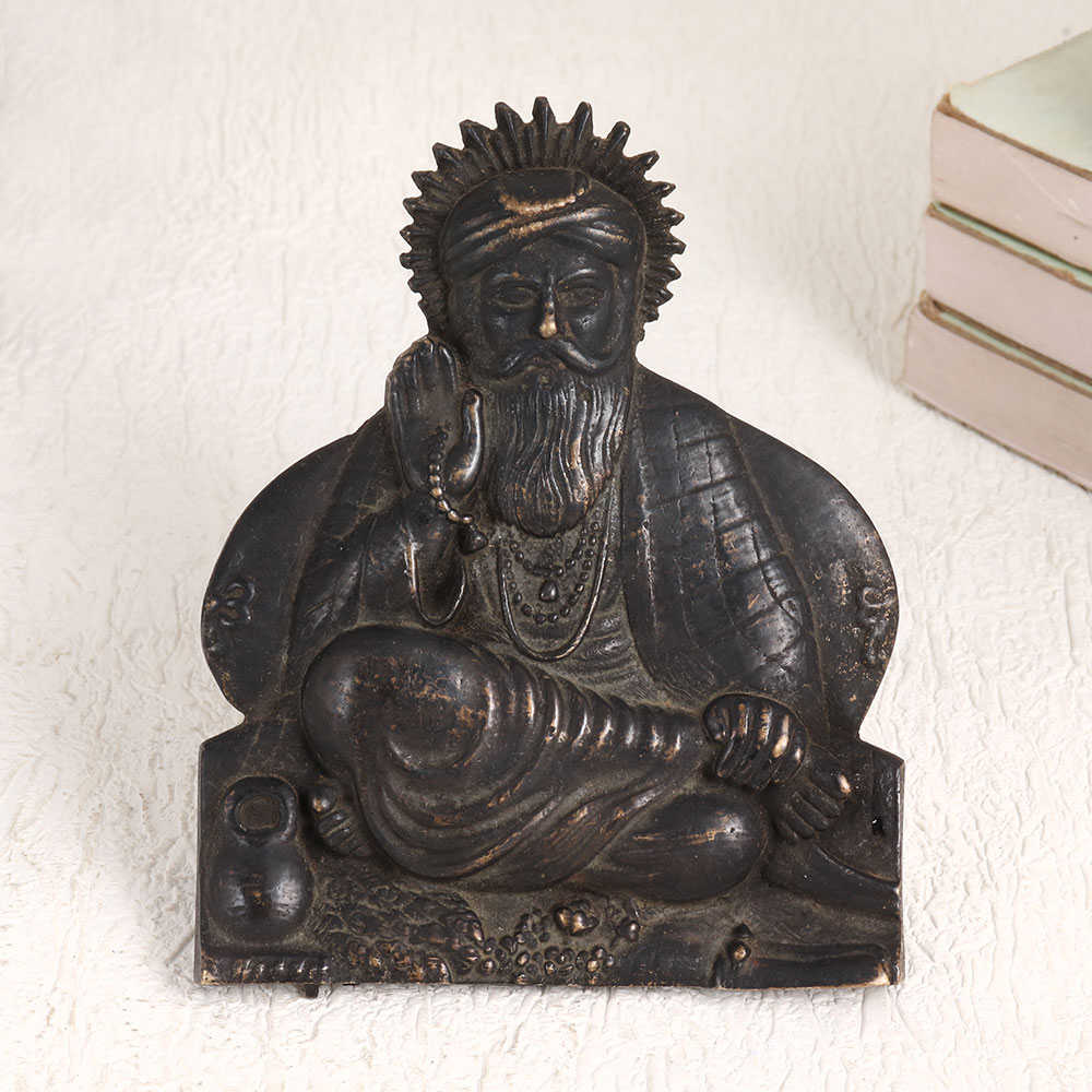 Enhance your interior decor with a touch of divine elegance by adding this exquisite Brass Holy Plate of Guru Nanak to your collection. Crafted by highly skilled Indian artisans, this antique dark finish plate exudes a timeless aura of spirituality and craftsmanship. Made from high-quality brass, this holy plate is a testament to the rich traditions of Indian metalwork. Its intricate detailing and exquisite design reflect the reverence and devotion associated with Guru Nanak, making it perfect for both worship and decoration. Whether adorning your home, office, restaurant, hotel, cafe, or shop, this versatile piece seamlessly blends with any setting, creating an ambiance of serenity and grace. Place it on your altar, hang it on your wall, or display it at an exhibition to showcase its beauty and cultural significance. This brass holy plate also makes for a thoughtful and meaningful gift for your loved ones on special, festive, or auspicious occasions.
