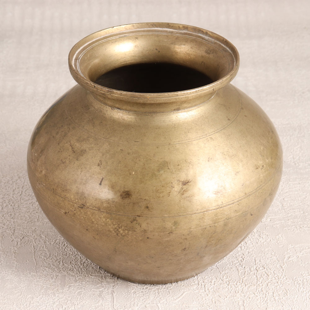 Buy a vintage brass holy water pot online and get a hassle free delivery right at your doorstep. Handcrafted with utmost precision by talented artisans hailing from the enchanting region of Rajasthan, India, this pot showcases the rich heritage of their craftsmanship. Its antique brown finish adds a touch of rustic elegance, giving it an aura of authenticity. Made from high-quality brass, this pot exudes durability and a sense of timelessness that is hard to come by in modern mass-produced items. This versatile piece can find a place in your home, office, hotel, cafe, shop, or restaurant's prayer room, infusing your environment with an air of spiritual serenity. Use it during prayers, or repurpose it as a charming small flower pot, bringing the beauty of nature indoors. Not only does this holy water pot spread positive energy throughout your home, but it can also make a unique addition to your vintage collection. Display it proudly at exhibitions or surprise your loved ones with this exceptional piece on special, festive, or auspicious occasions.