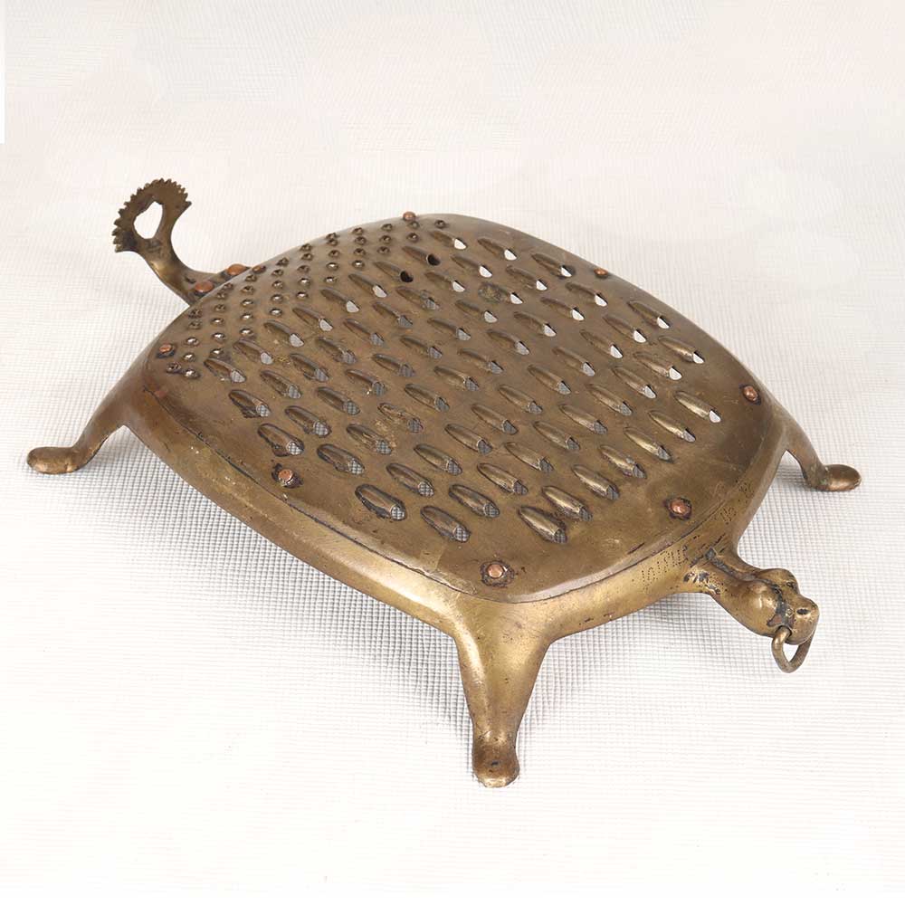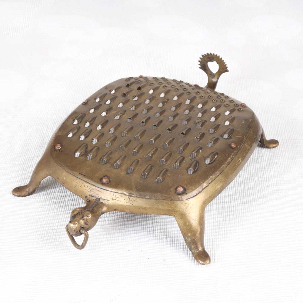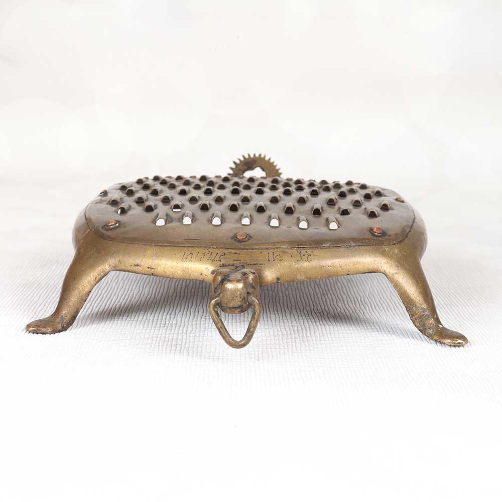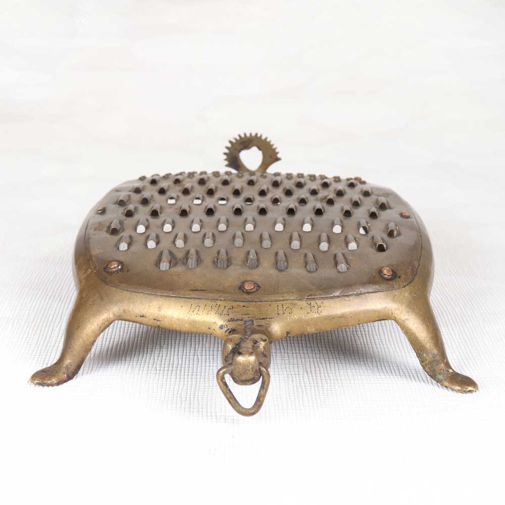 Step back in time with this elegant vintage brass vegetable grater. Lovingly used and displaying a wonderful patina, this grater evokes memories of cozy kitchens filled with the aroma of home cooking. This antique grater is a charming decorative accent that brings vintage charm to any kitchen. Display it on your countertop or mantel to add a pop of brass and a nod to times past. The well-worn brass and classic shape give this grater loads of vintage appeal. For decor purposes only, this vintage grater makes a wonderful addition to any home with classic or vintage style. Place it in your kitchen, dining room, or living area to create an antique atmosphere. A beautiful patina makes each one unique.
