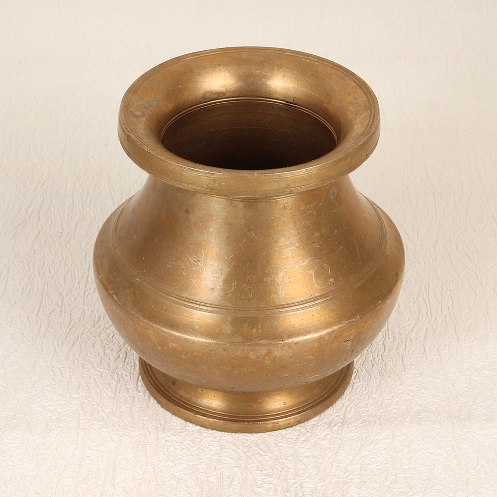Buy a Vintage Brass Holy Water Pot online that is meticulously crafted by professional Indian artisans in the revered South Indian Art tradition. This sacred vessel, designed for prayer, rituals, and havans, stands as a testament to both artistry and spirituality. Forged from high-quality brass, the pot features an exquisite antique brown finish that exudes an aura of antiquity and authenticity. Its handmade construction adds a personal touch, making each piece unique and imbued with the craftsmanship of dedicated artisans. This versatile artefact seamlessly integrates into various settings, be it at home, office, restaurant, hotel, or cafe prayer room. Beyond its sacred purpose, it doubles as an indoor flower pot, infusing your space with tranquillity and natural beauty. A splendid addition to any vintage collection, this holy water pot becomes a timeless piece that transcends generations. Consider this holy water pot as a thoughtful gift for your loved ones on special, festive, or auspicious occasions.