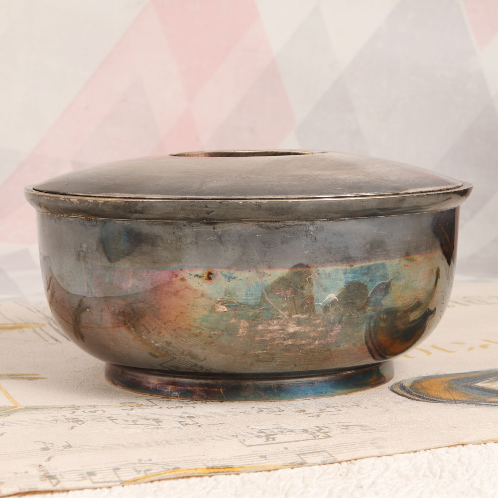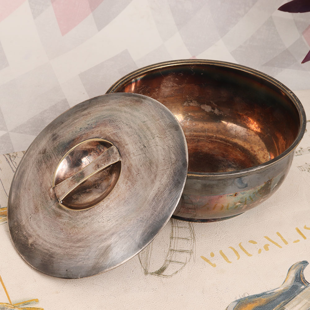 Decorate your interior with a touch of timeless elegance with this exquisite vintage white metal food box. Meticulously handcrafted by talented artisans in the English Art tradition, this food box boasts a unique and captivating antique brown finish that's silver-plated to perfection. Crafted from high-quality white metal, it exudes a sense of nostalgia and craftsmanship that's sure to enchant. This vintage food box serves as a stunning addition to various settings, including your home, office, restaurant, hotel, cafe, or shop. Its charming design and antique finish make it a conversation piece and a captivating decorative item. However, due to its vintage nature, we recommend using it primarily for decoration purposes. Adding this vintage treasure to your collection is a fantastic way to embrace the past while adding a dash of sophistication to your space. It also makes for a thoughtful and unique gift for your loved ones on special, festive, or auspicious occasions, ensuring that it becomes a cherished heirloom passed down through generations.