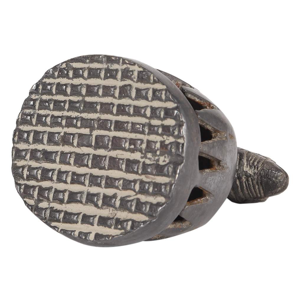 Vajri or foot scrubbers originated in India and were most likely used in the early late 18th century. Women bathing in a small lake or stream used these exquisite objects as foot scrubbers. These vajris have axles (small metal balls) inside it that cause them to ring or jingle when it is used. It was to warn others to maintain the bathing women having privacy and avoid the place. Antique brass ones appear to have been common, and they were created in a range of forms and ornamented with just an animal pattern, such as a bird, elephants, leopard etc. The contoured bottom is just what makes them useful and user-friendly.