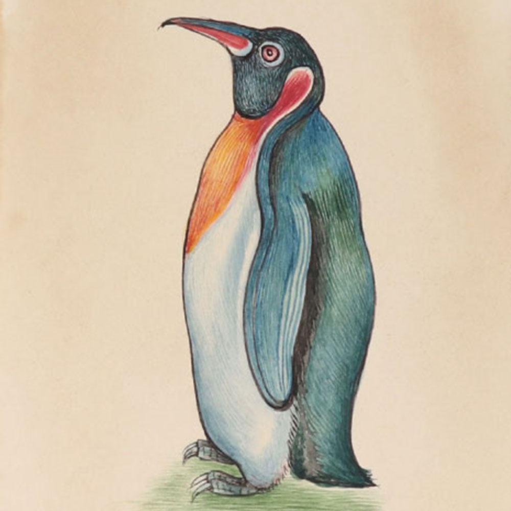 Flightless Bird Penguin Miniature Watercolor Painting