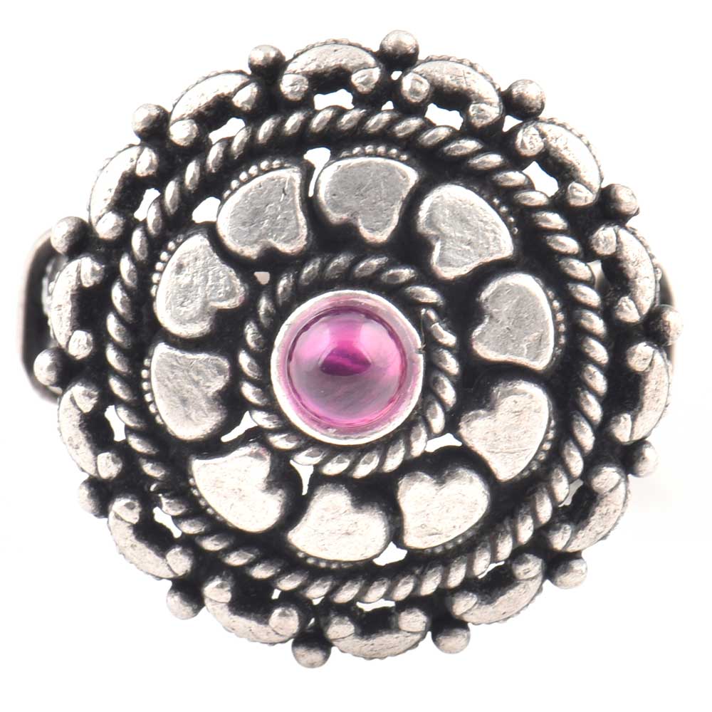 Floral 92.5 Sterling silver Ring Heart Design With Embossed Motif In the Border (Free Size)