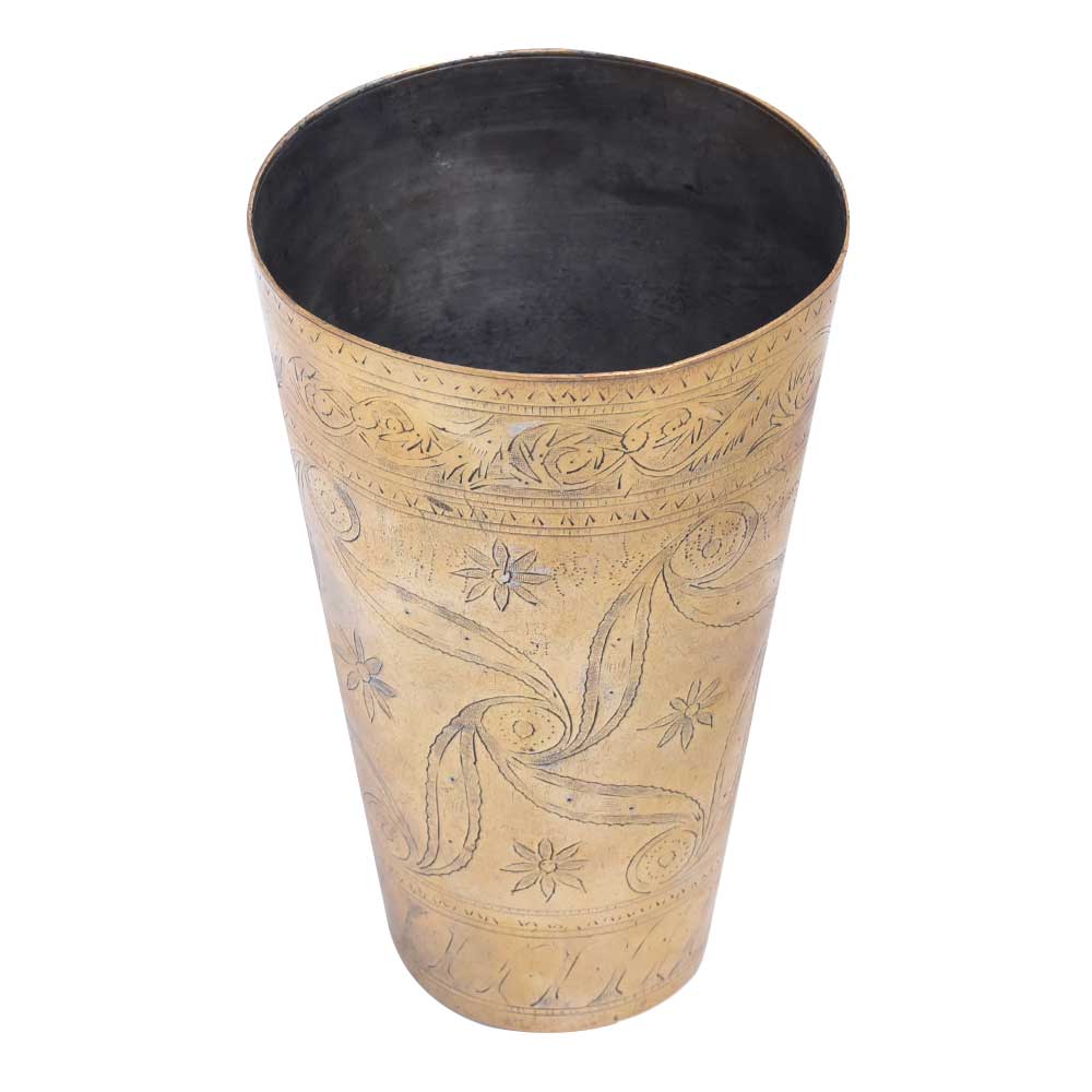 Beautiful Floral Carving in brass big lassi glass will be an excellent addition to your kitchen, restaurants, and other establishments. The Lassi Glass is a lovely choice for personal use or as serving ware. Use for drinking water and making Lassi. Punjabis make lassi in a large brass lassi glass designed specifically for drinking lassi. The item has a flower design that adds to your home decor or can be used for restaurant decoration.