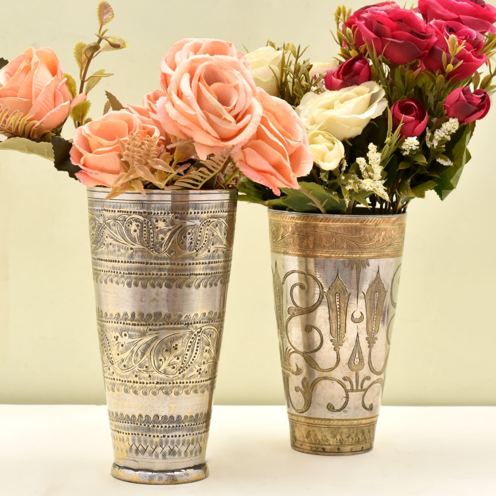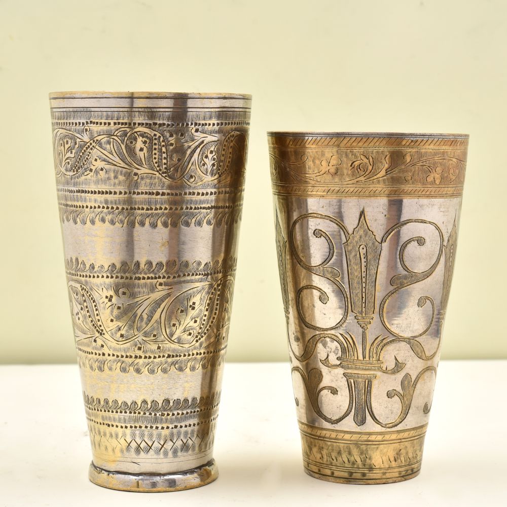 Floral Design Golden Brass Vintage Butter Milk Cup - Pack of 2