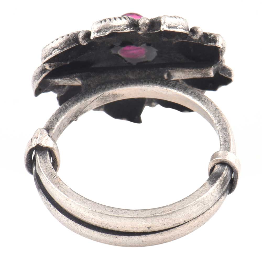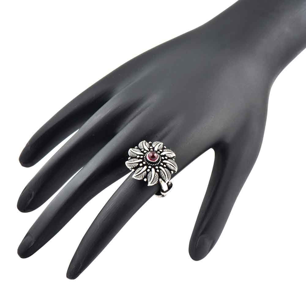 • Floral Leaves Oxidized  92.5 Sterling Silver Ring Adjustable With Amethyst Stone For Women (Free Size)
