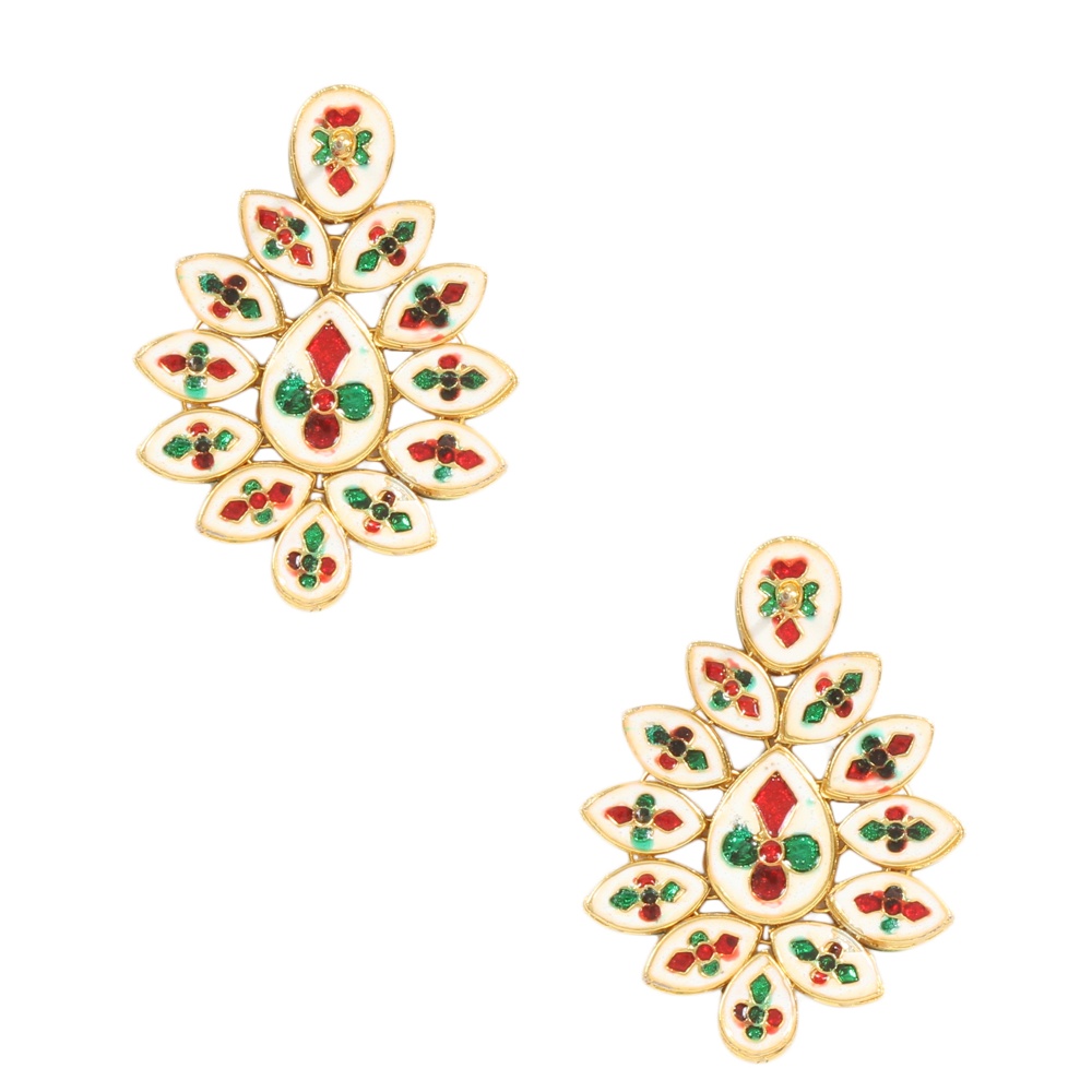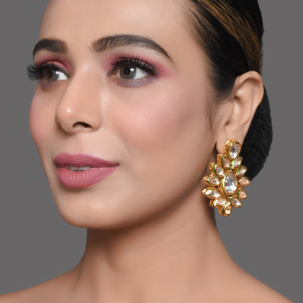 • Design: Floral stud earrings with layered stone placement