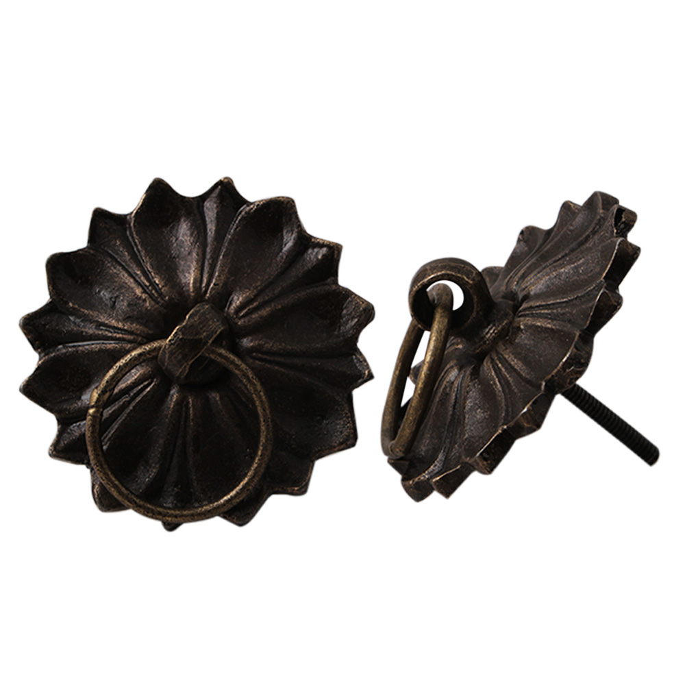 Made from high-quality iron, these cabinet knobs are built to last. The antique finish gives them an elegant, aged appearance, while the intricate floral design stands out as a beautiful focal point in any room.
