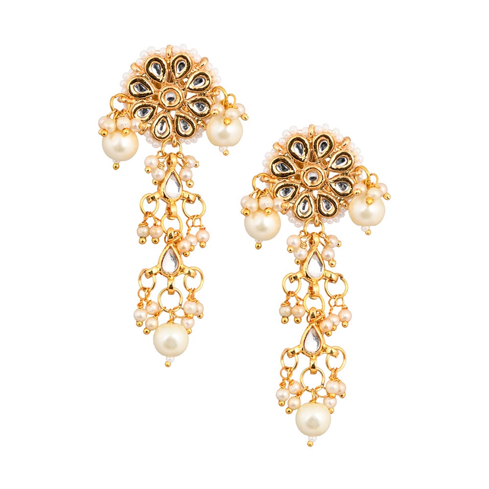 - Cascading chains adorned with clusters of pearls leading to a large pearl drop