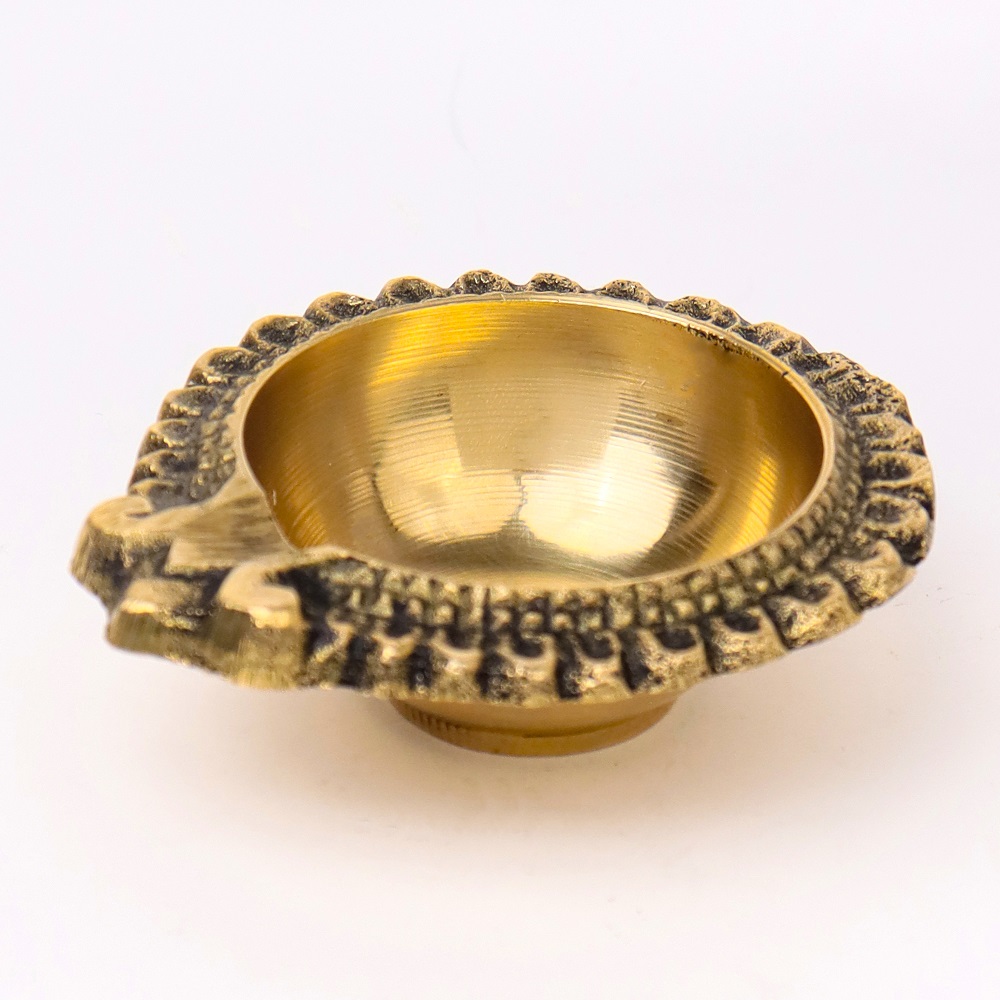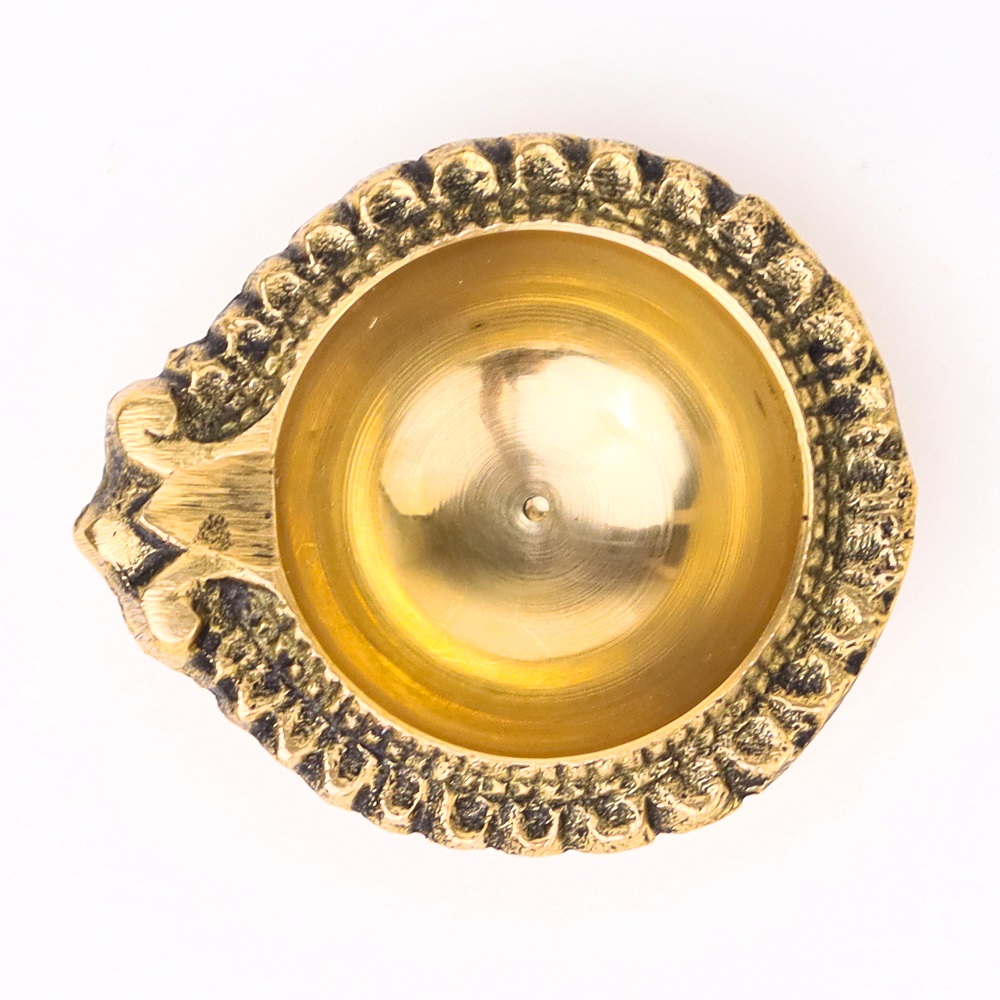 Bring divine radiance into your home with this Floral Round Brass Diya, a symbol of light, purity, and devotion. Handcrafted in solid brass with a polished golden finish, its delicate floral pattern adds elegance to traditional rituals. Compact yet striking, this diya is perfect for Diwali, daily puja, or as a sacred accent in your mandir and living spaces.