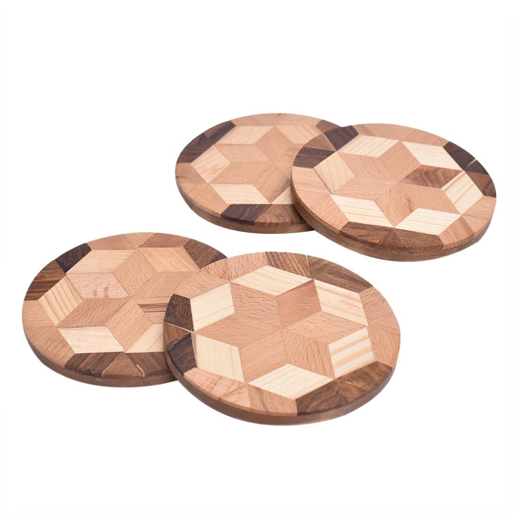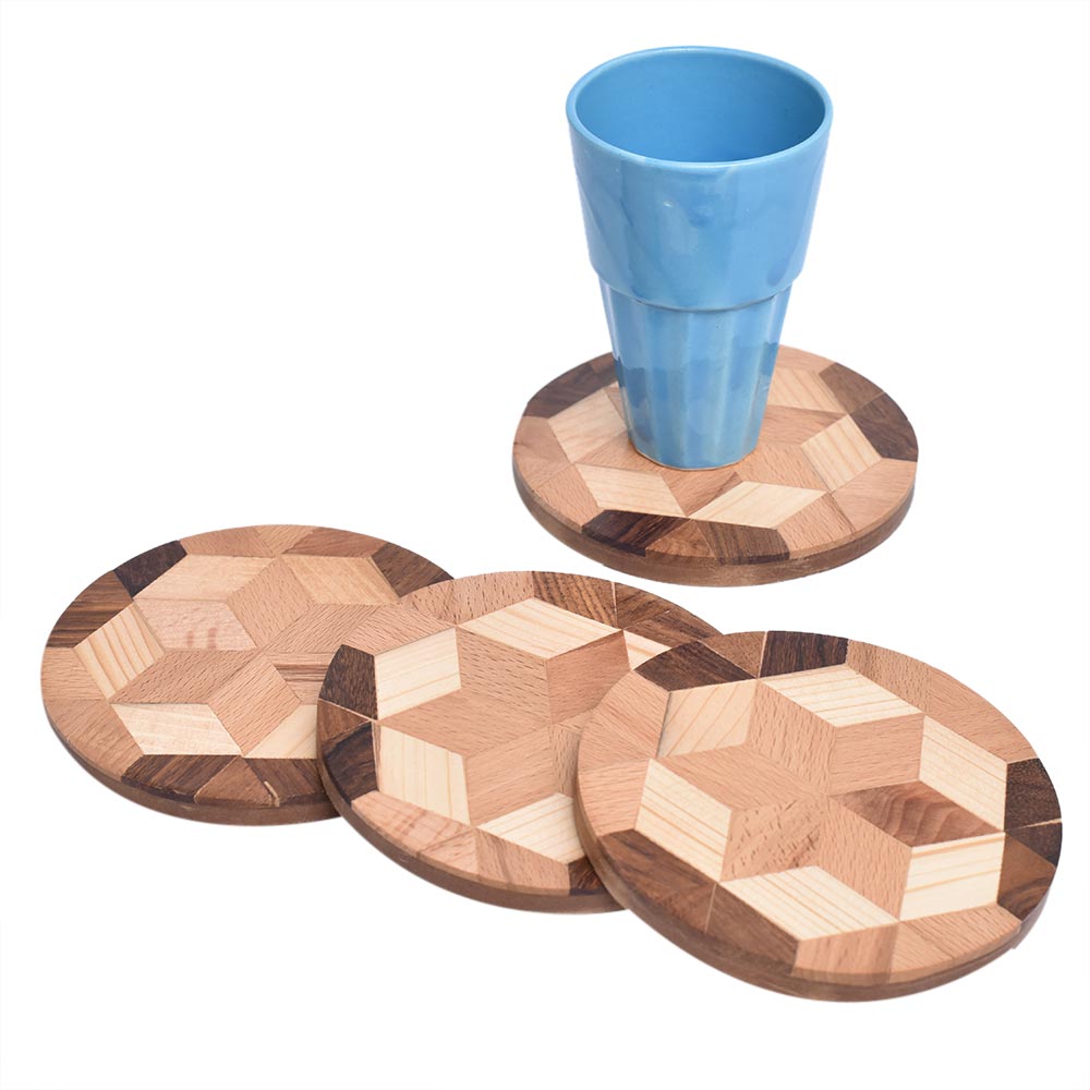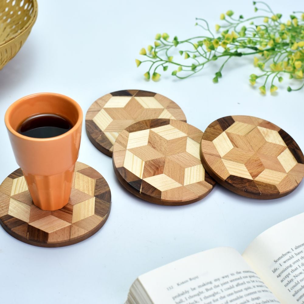 Handcrafted in wood and resin, it has a brown base with a matte polish and a glossy resin part that is ideal for resting your drink ware and protecting the surface of your table. These coasters add a value of eloquence, curiosity, and charm of modern art to your kitchenware and are ideal tableware and coffee coasters for impressing your guests. These coasters are handcrafted by artisans in India. Ideal for resting your drinkware and protecting your table's surface.