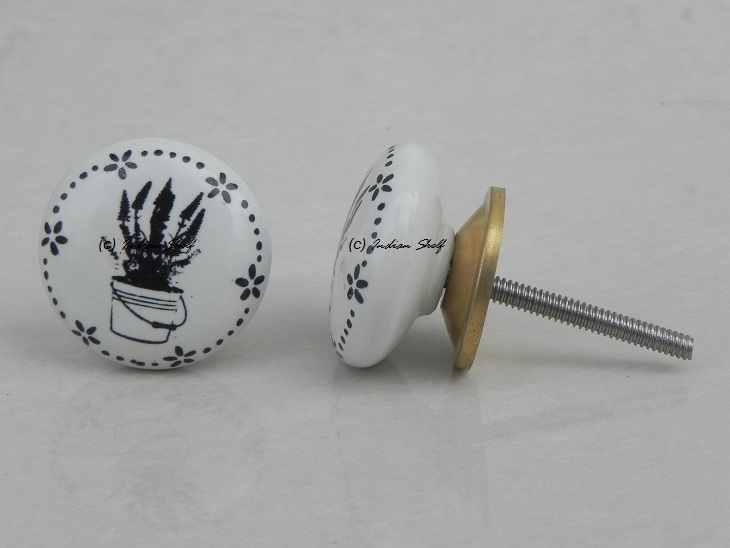 Flower Pot Flat Ceramic Knob. Ideal for kitchen cabinets, kitchen drawers, dining room, bed room, chest drawers, dressing tables, almirah
