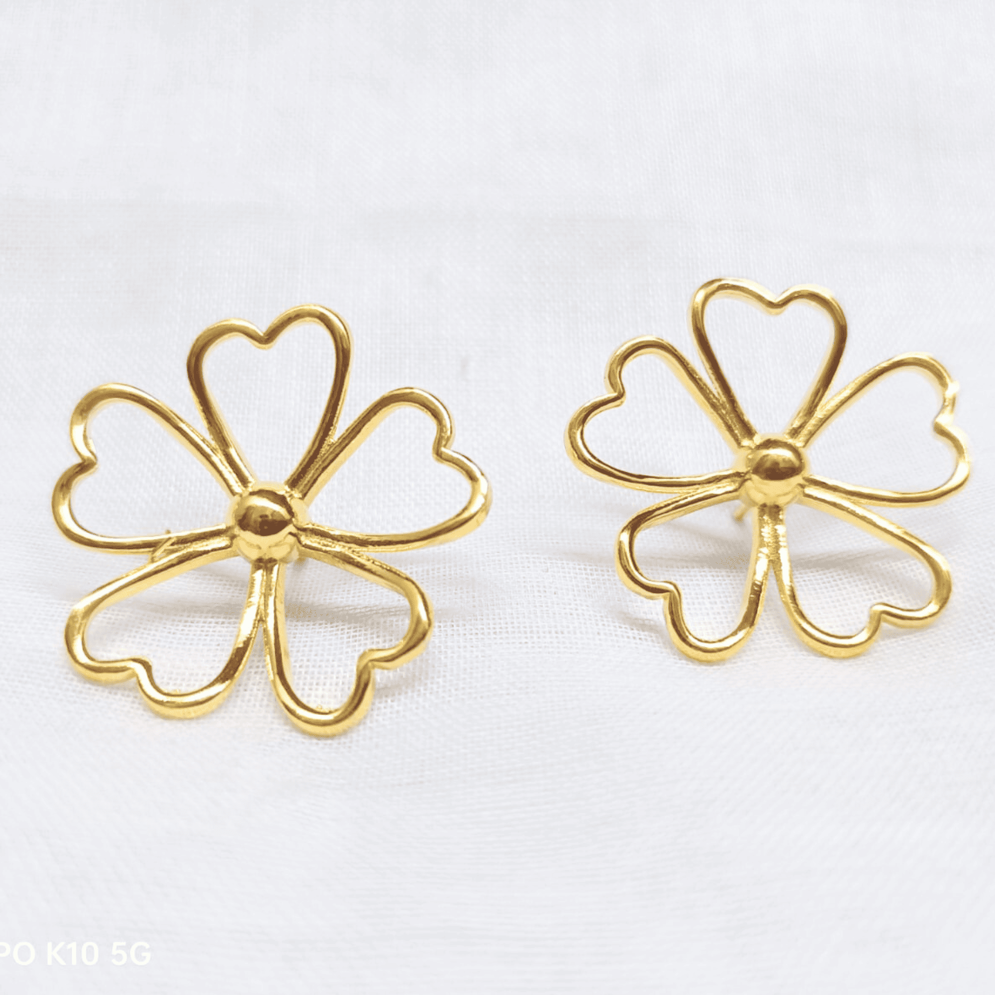 The Flower Stud Earrings bring the eternal charm of nature into fine craftsmanship. Handcrafted from premium-quality brass and finished with radiant 18K gold plating, each stud features a delicate floral motif symbolizing beauty, vitality, and elegance. The soft golden sheen complements every skin tone, while the intricate petal detailing reflects light with natural brilliance. Perfect for women who love timeless floral designs and ideal for wholesale collections that celebrate handcrafted artistry.