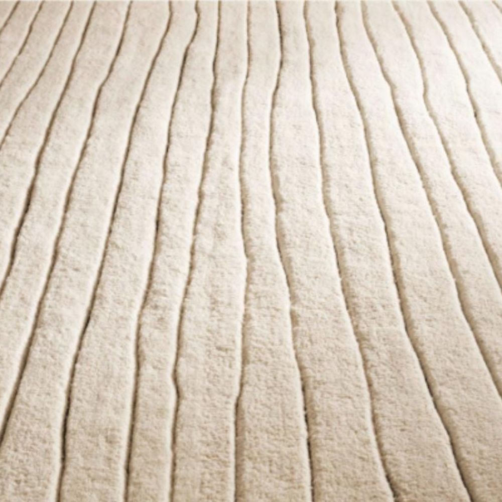 • Handmade rug with Moroccan-inspired linear ripple design