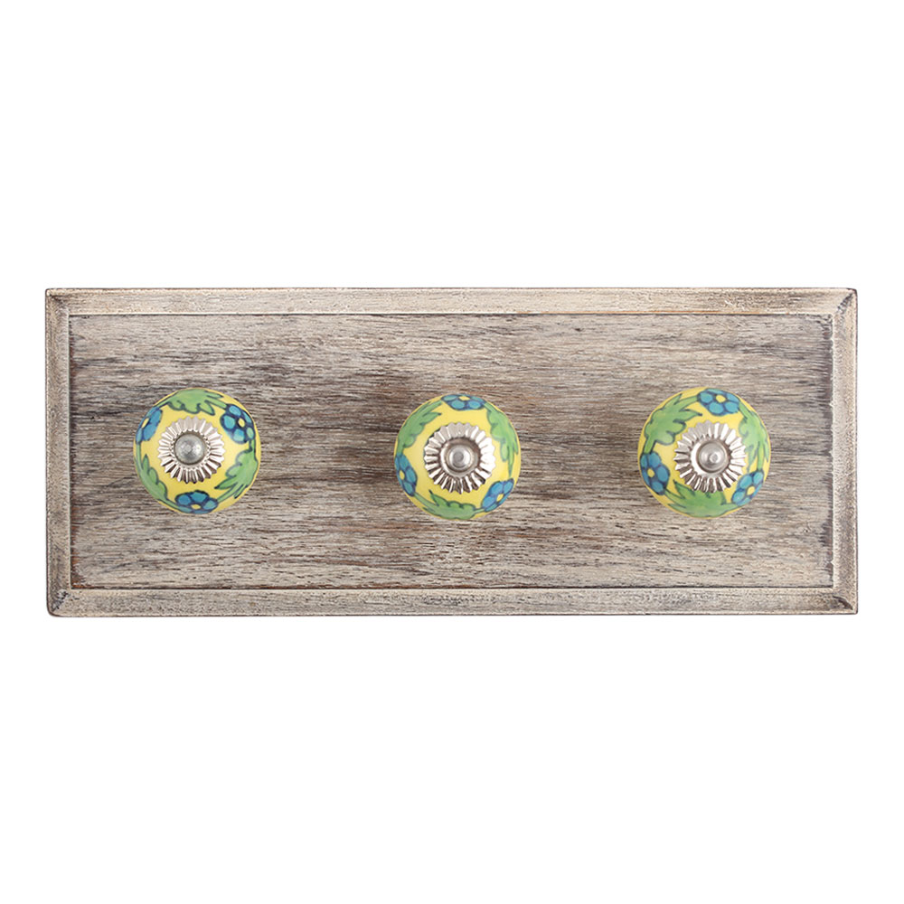 forest Bouquet Ceramic Wooden Hook. A Perfect Complement to the Soft Tone of the Wood are these White Traditional Hat Coat Hook Made of Genuine Porcelain and Brass. It can be use to Hang Jewellery, Leashes, Towels, Scarves, Light Weight Sweaters, Caps Etc.