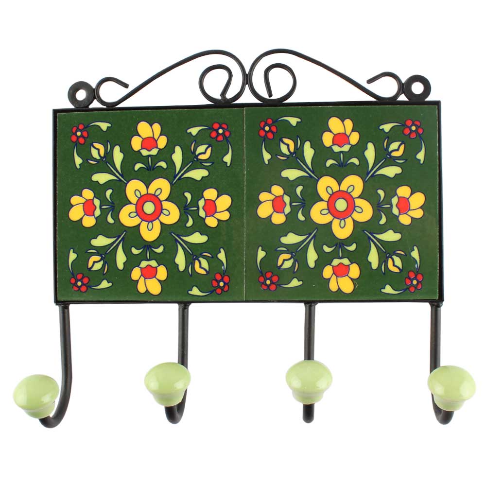 Forest Green Ceramic Tile Hook. When Put on Wall or Cabinet It is An Art in Itself. The Metal Part of this Hook is Black Powder Coated.