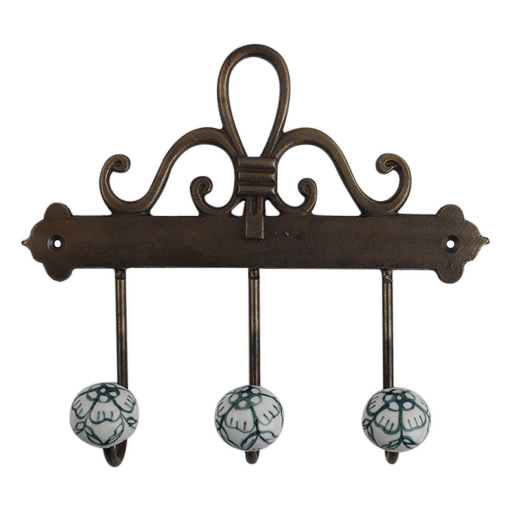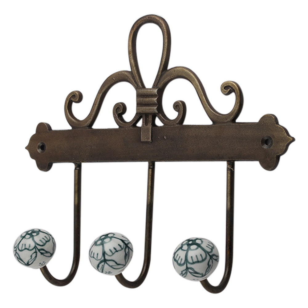 forest Green Floral Ceramic Iron Hook. A Perfect Complement to the Soft Tone of the Wood are these White Traditional Hat & Coat Hook Made of Genuine Porcelain and Brass. It can be use to Hang Jewellery, Leashes, Towels, Scarves, Light Weight Sweaters, Caps Etc.