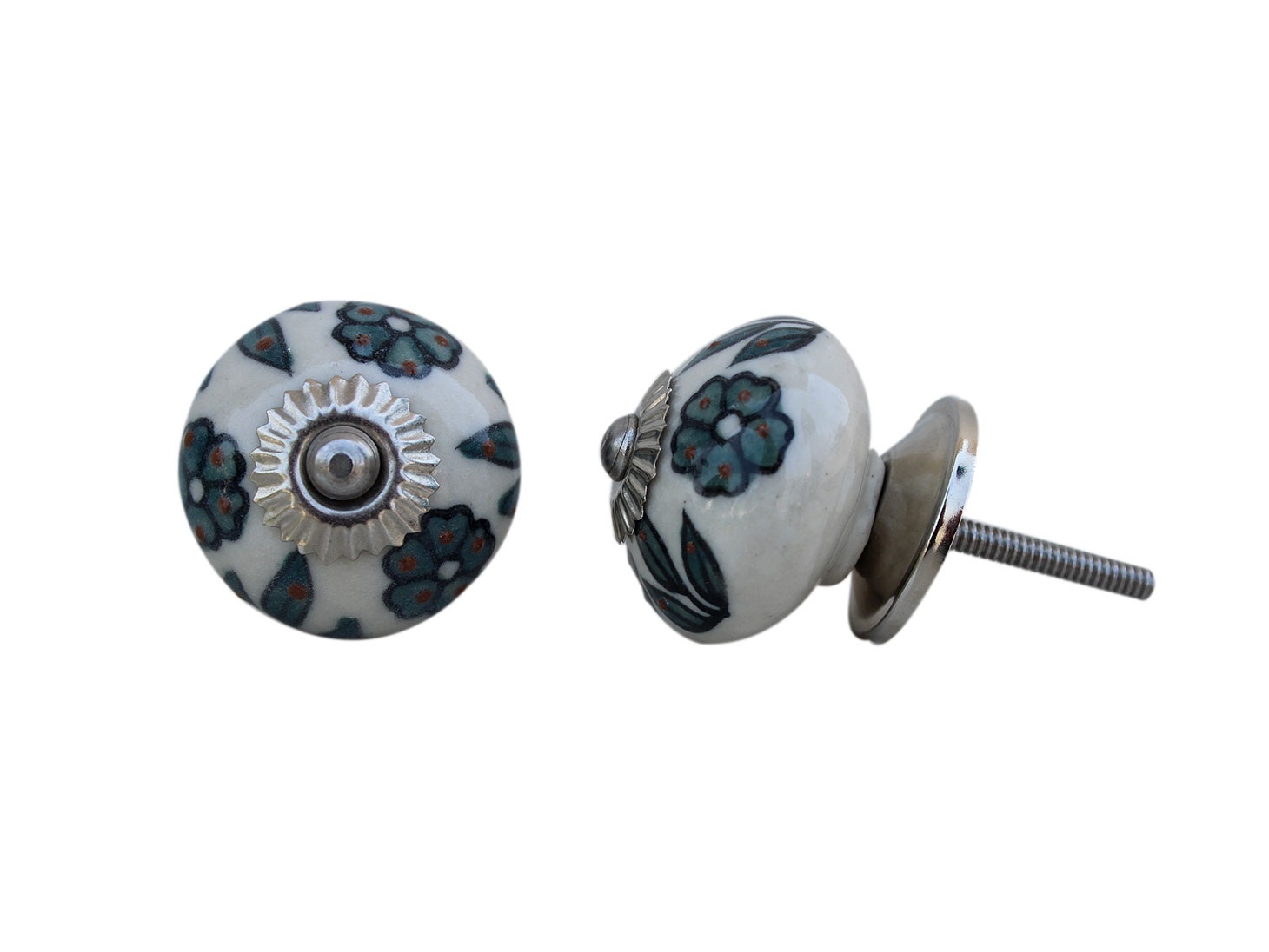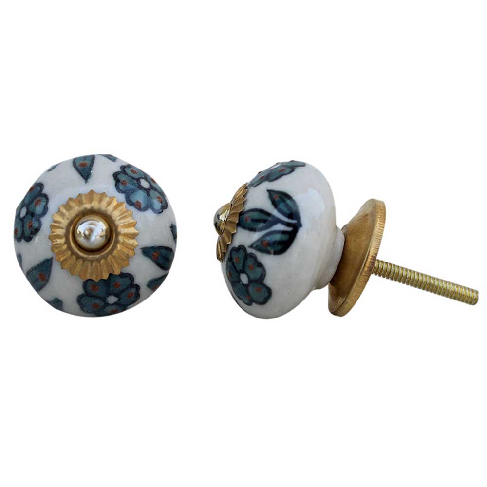 Forest Green Floral Ceramic Knob
