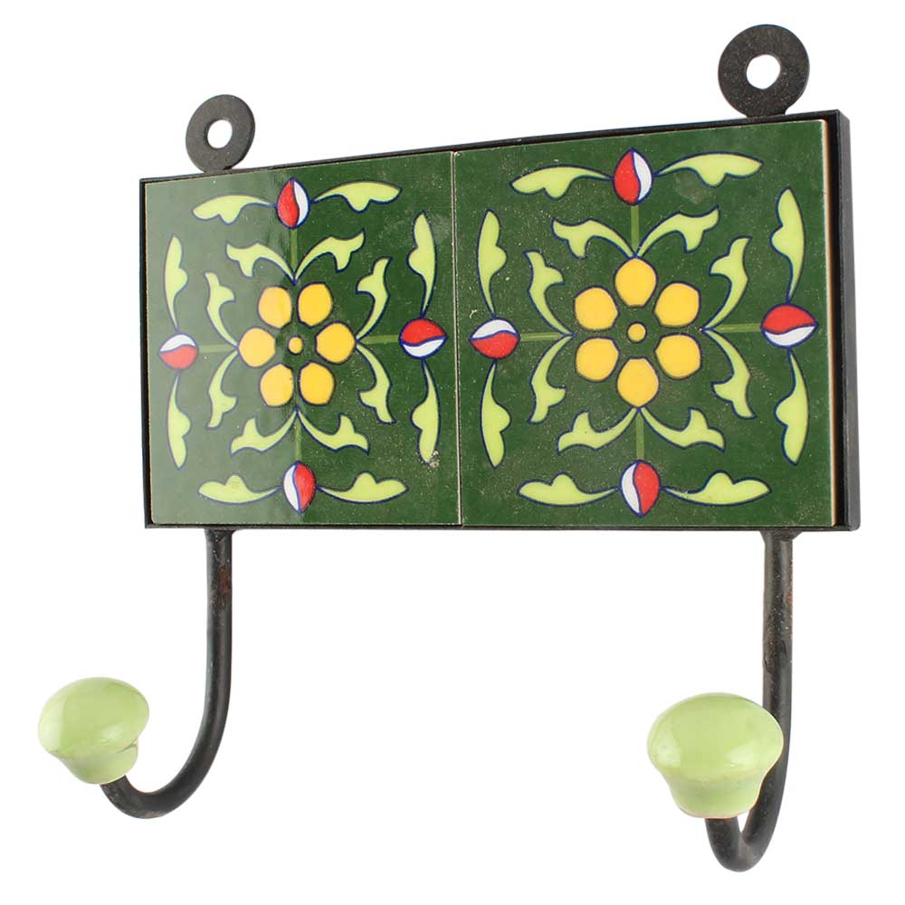 Forest Green Floral Ceramic Tile wall Hook