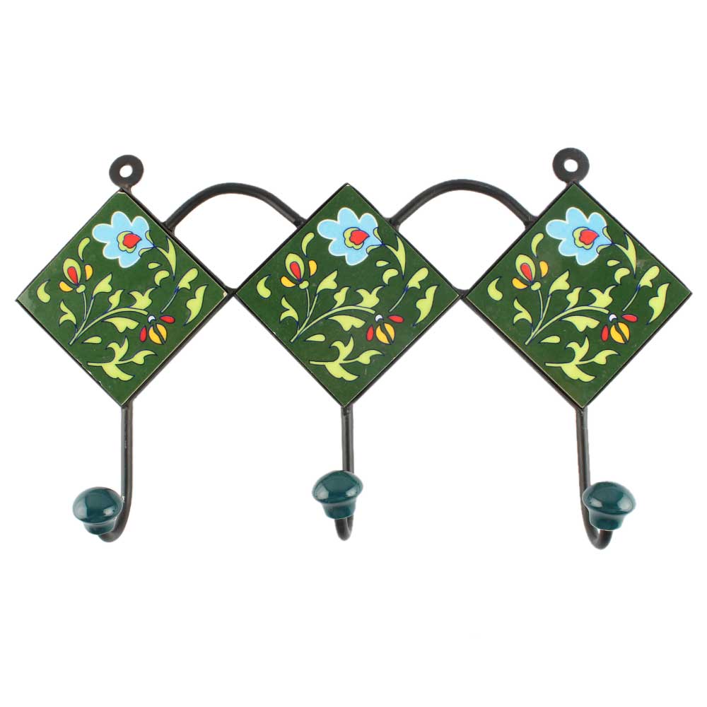 Forest Green Leaf Ceramic Floral Tile Wall Hook