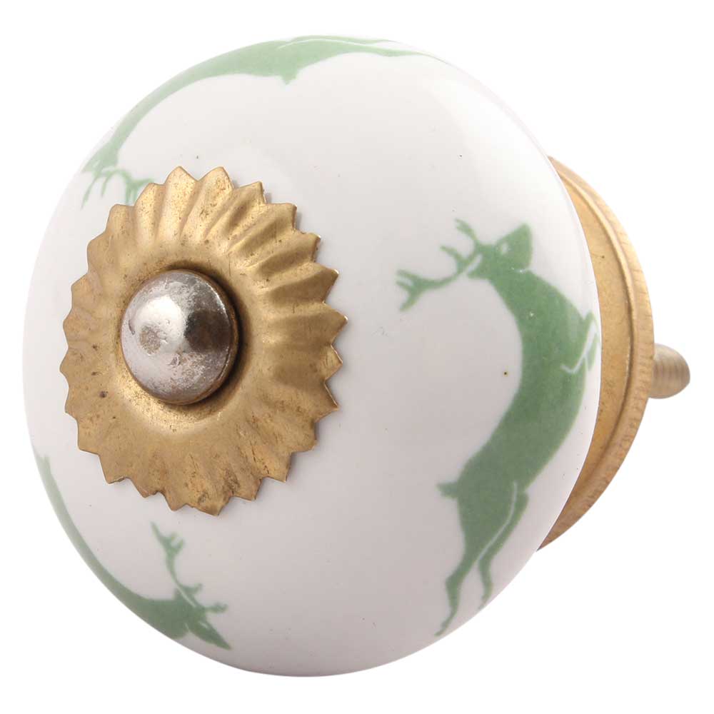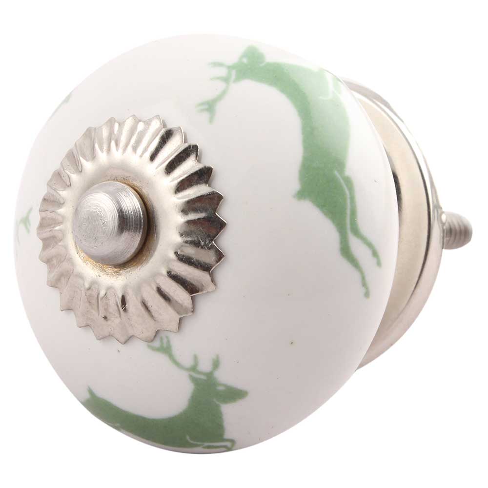 Forest Green Running Rein Deer Pattern Ceramic Cabinet Knob