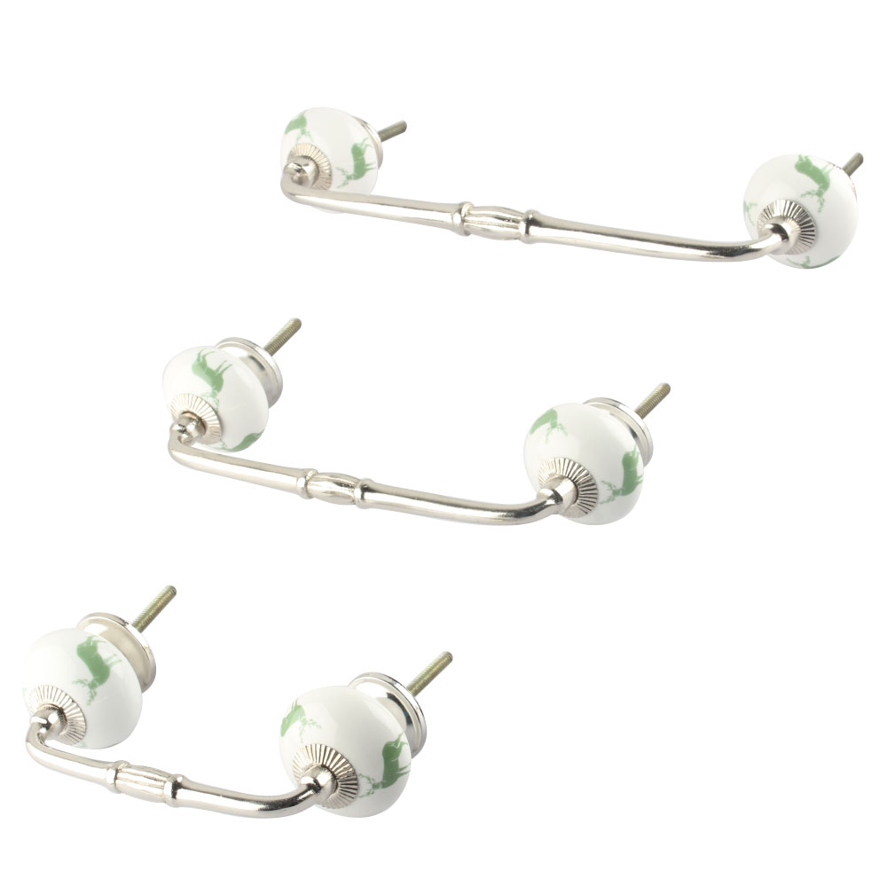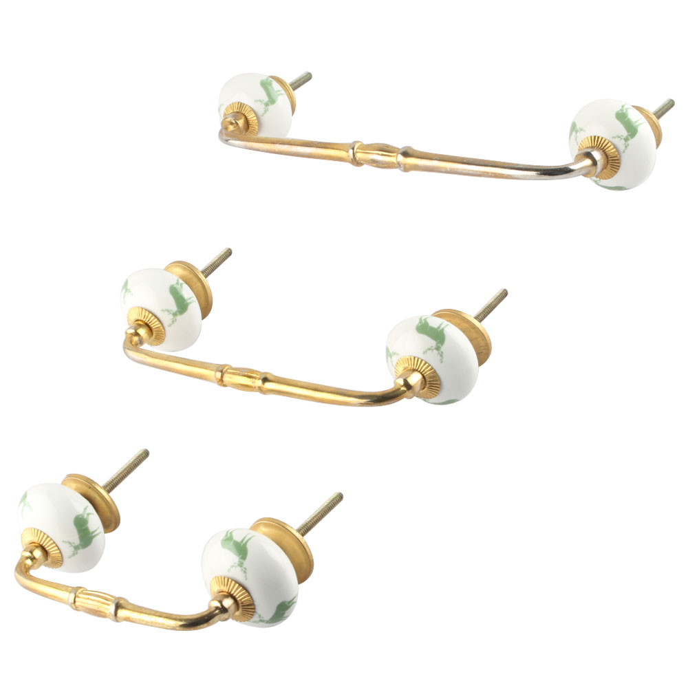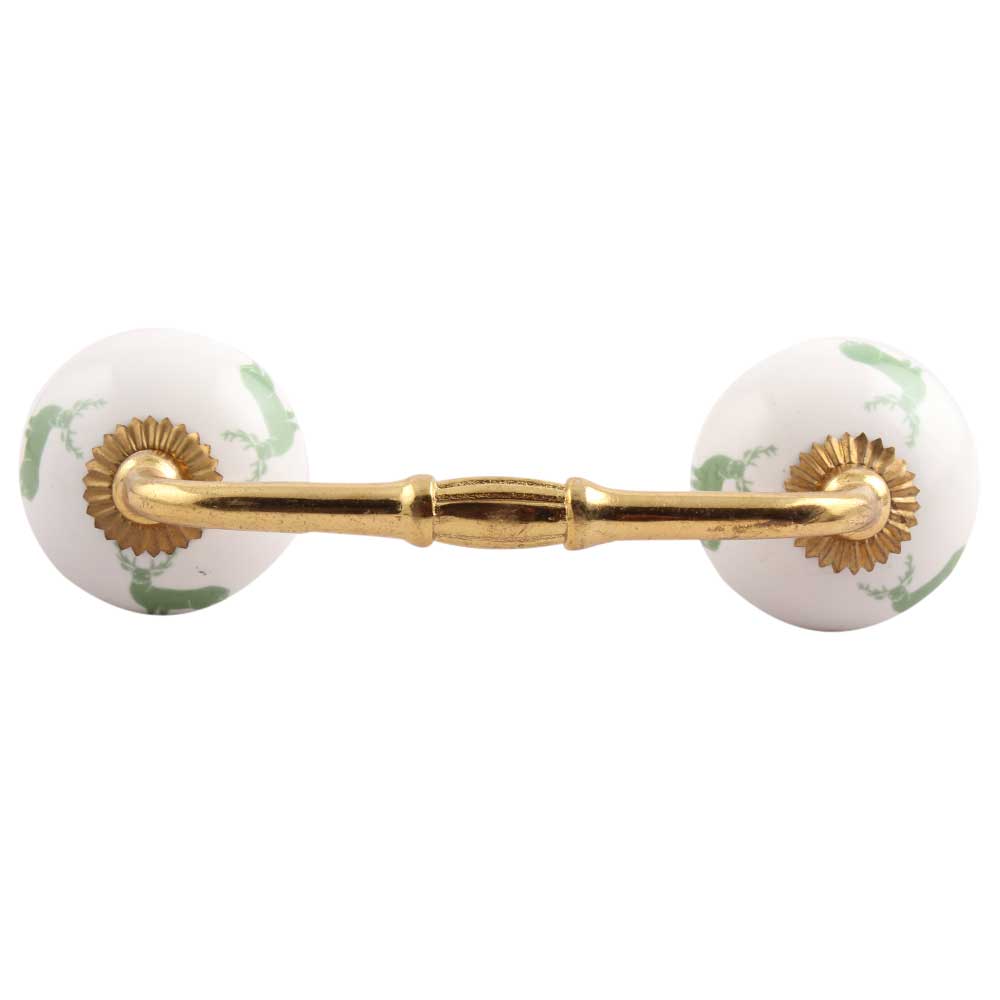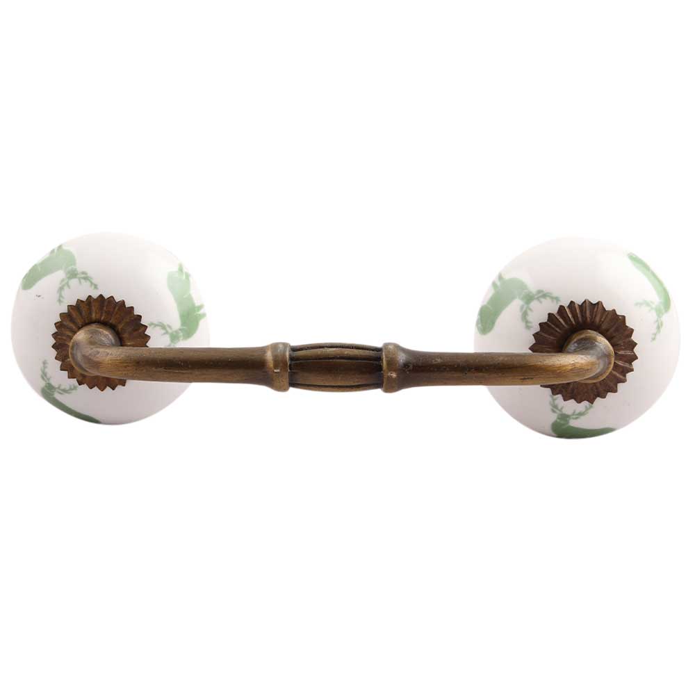 forest Green Standing Rein Deer Pattern Ceramic Bridge Handle. Ideal for Drawer, Dresser, Cabinet, Wardrobe, Cupboard and Almirah.