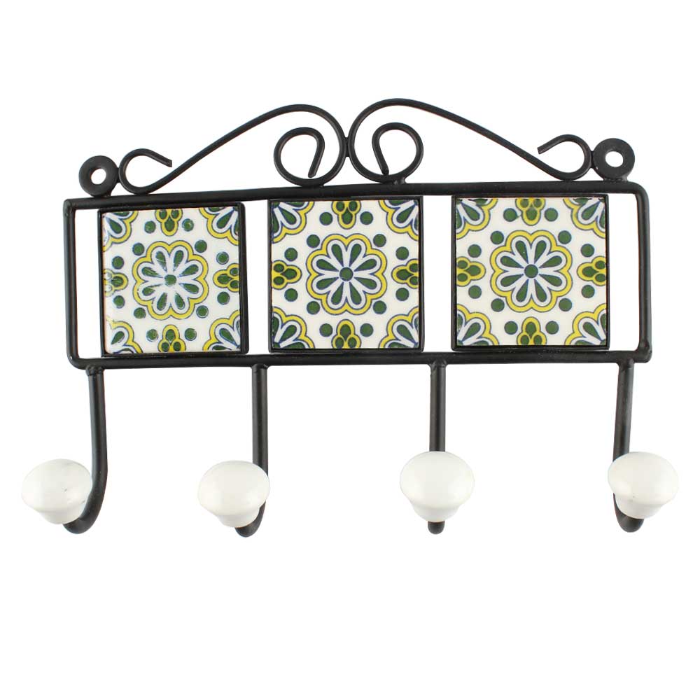 Forest Green Wheel Flower Ceramic Tile Hook. When Put on Wall or Cabinet It is An Art in Itself. The Metal Part of this Hook is Black Powder Coated.