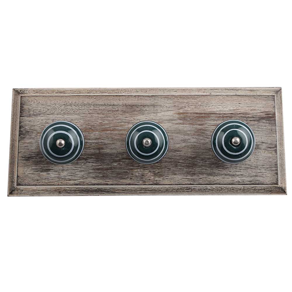 forest Green White Strip Wooden Hooks (2). A Perfect Complement to the Soft Tone of the Wood are these White Traditional Hat Coat Hook Made of Genuine Porcelain and Brass. It can be use to Hang Jewellery, Leashes, Towels, Scarves, Light Weight Sweaters, Caps Etc.