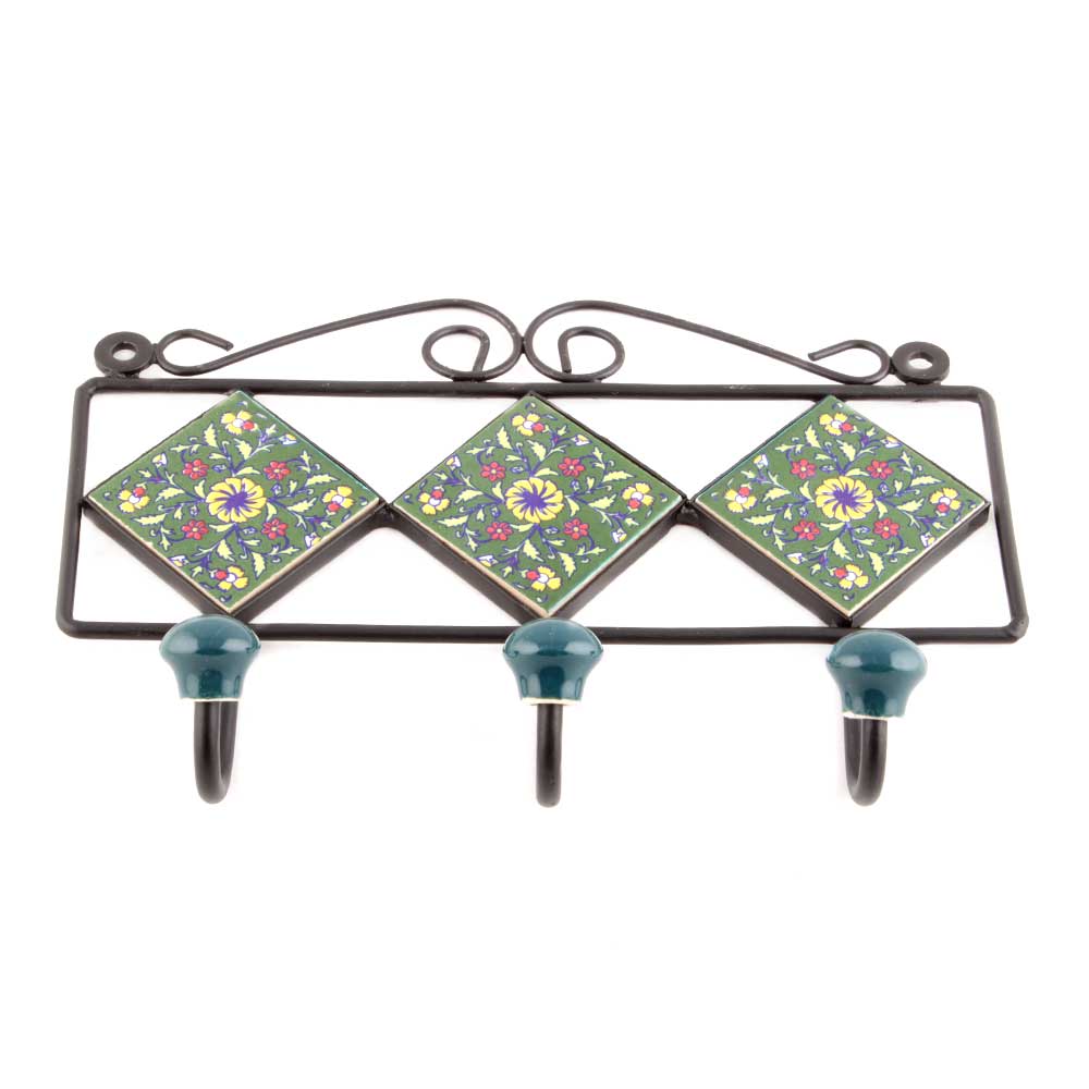 Forest Green Yellow Wheel Tiles Hooks