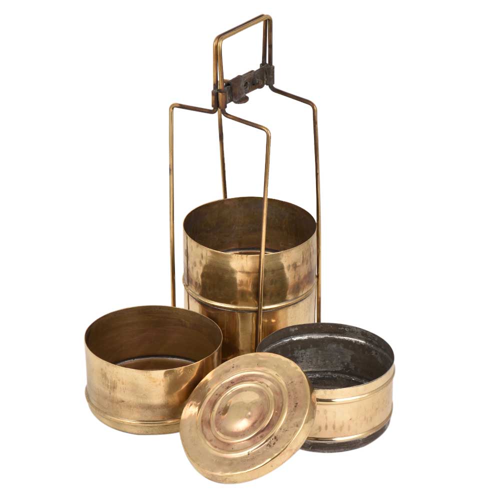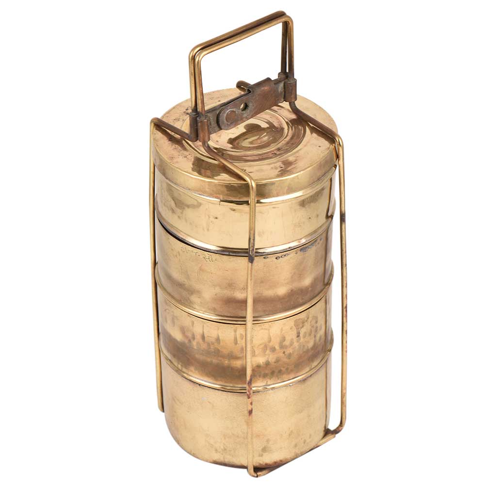 • Four Compartment Brass Tiffin Box With A metal Frame And a Lock