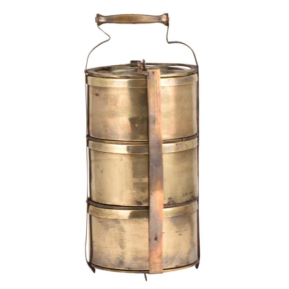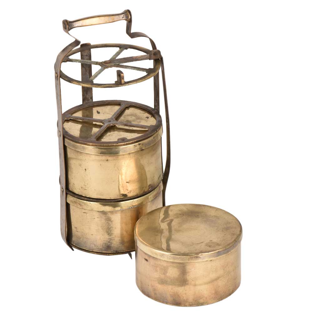 • Four Cross Frame Brass Tiffin Box For Three Containers