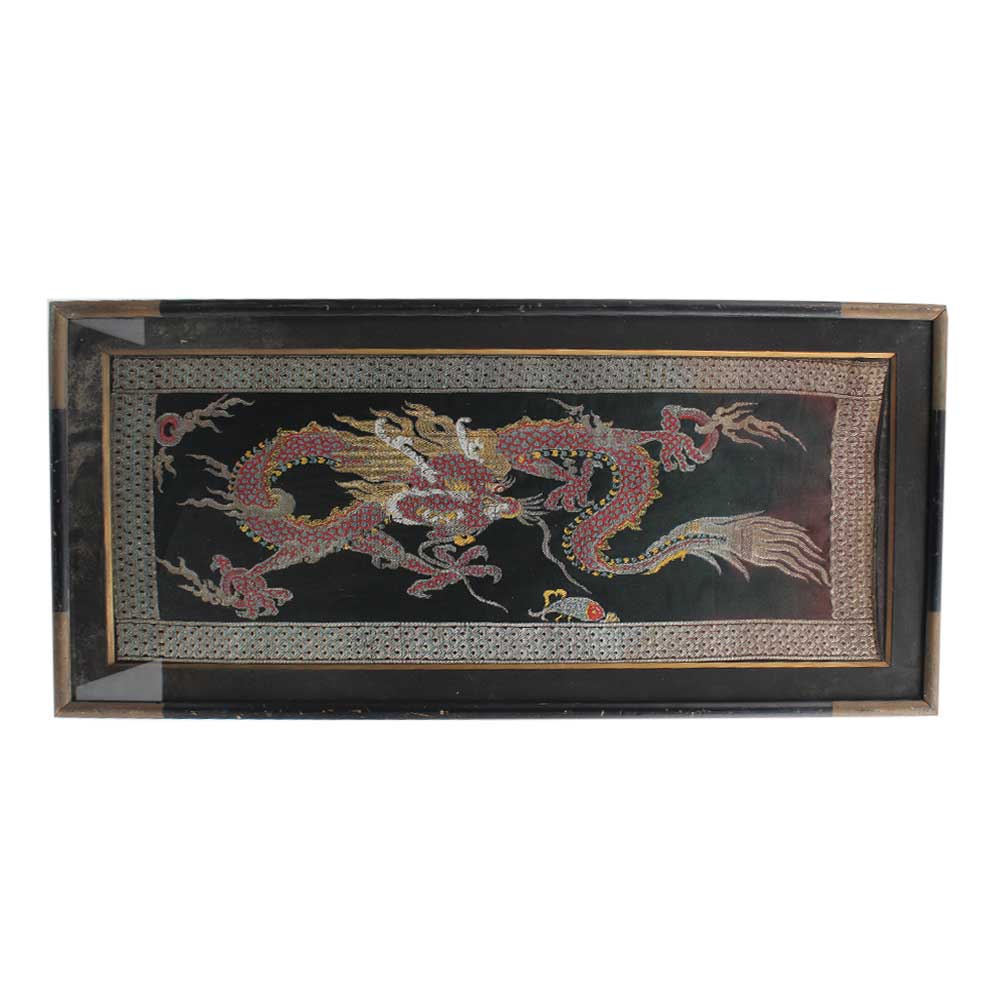 • Framed Embroidered Chinese Dragon Art
