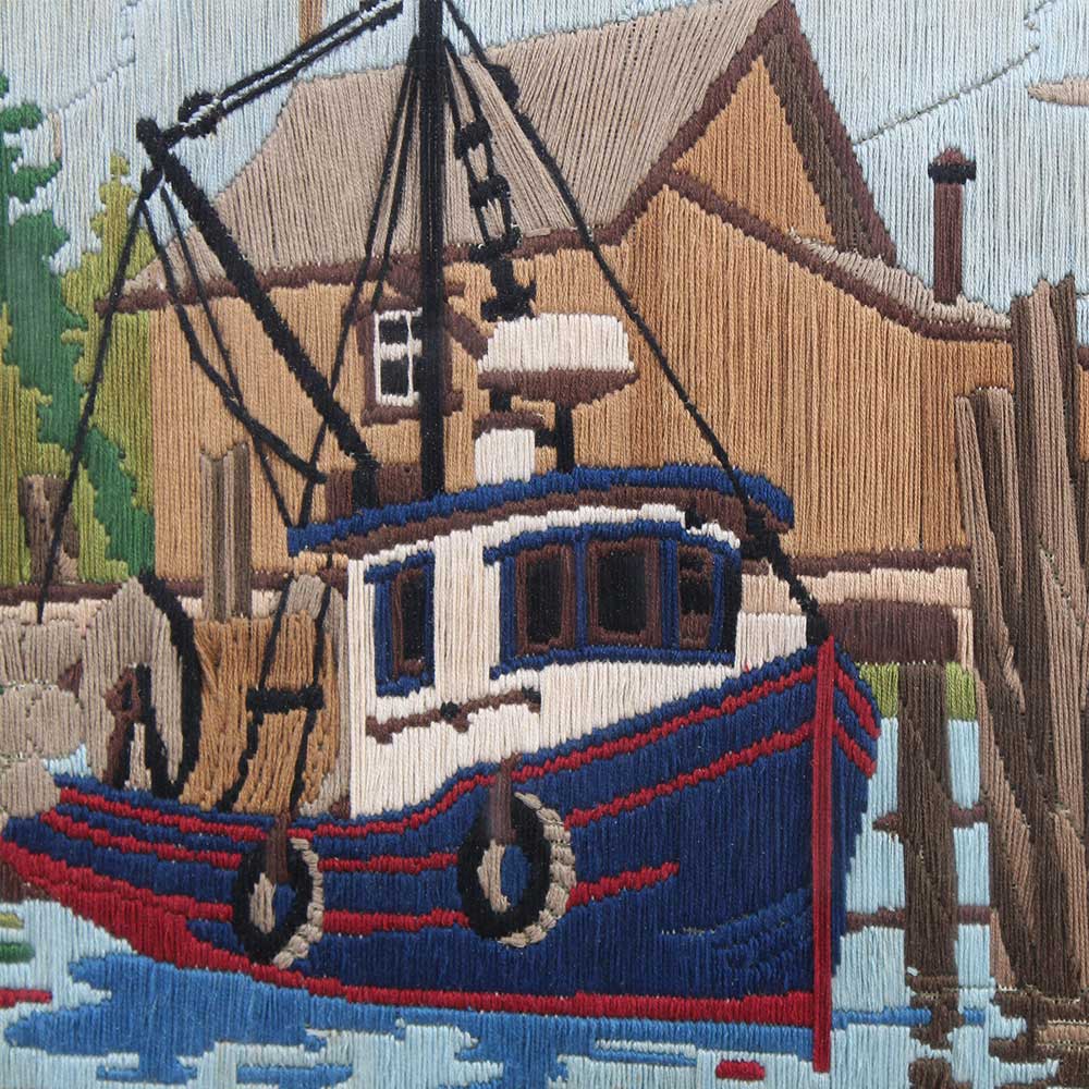 Framed hand design embroidery needle fabric artwork sailor ship design cross stitch pattern made with multi-coloured threads It is appropriate for use in the living room, bedroom, dining room, bar, kitchen, and office.