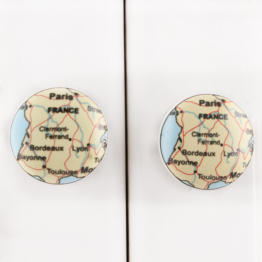 If you're looking to add a unique touch to your furniture, the France Map Flat Ceramic Drawer Knob is an excellent choice for upcycling old furniture or adding an unexpected pop to new pieces.
