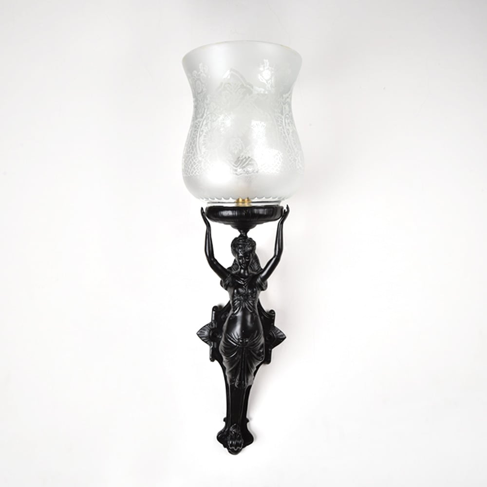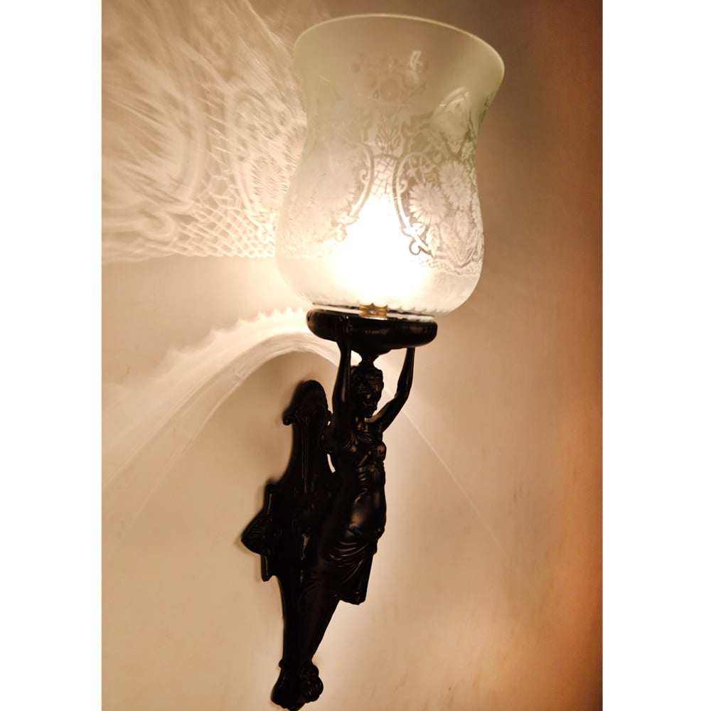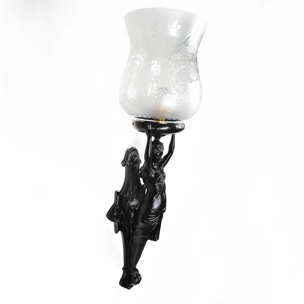 French Art Nouveau lady figure wall lamp. The lamp is unique and allows a great lighting option for any room.
