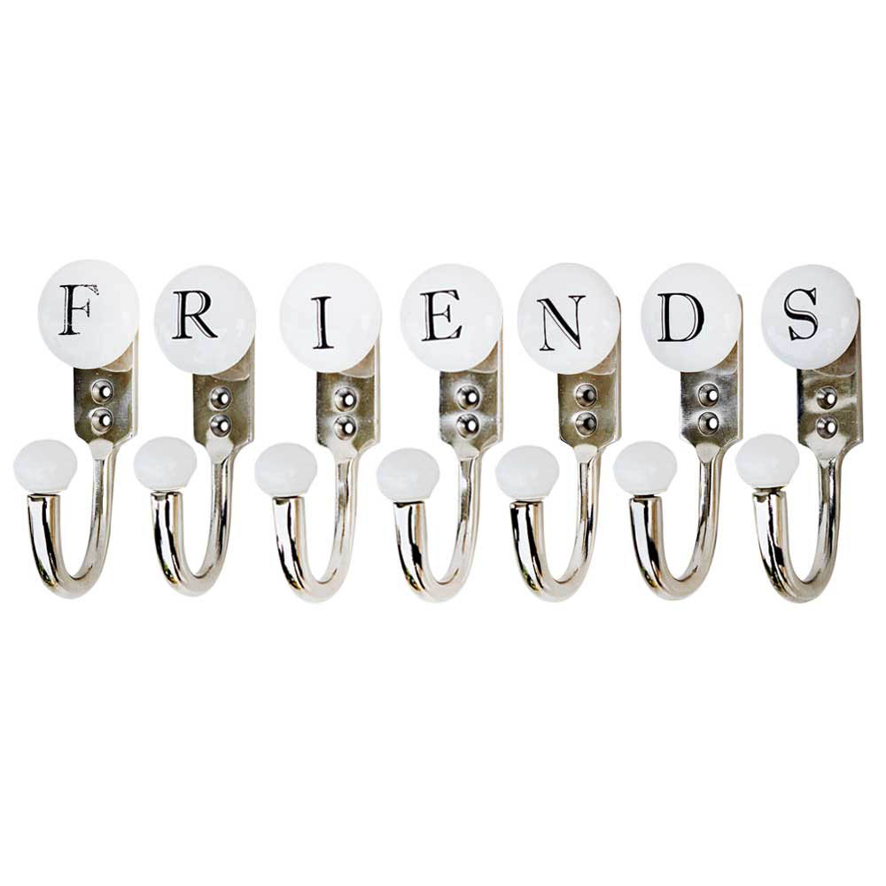 FRIENDS white and black alphabet hooks (combo pack). When put on wall or cabinet it is an art in itself. This hook is strong enough to hold your keys, tea cups, hand towels, cloths etc.