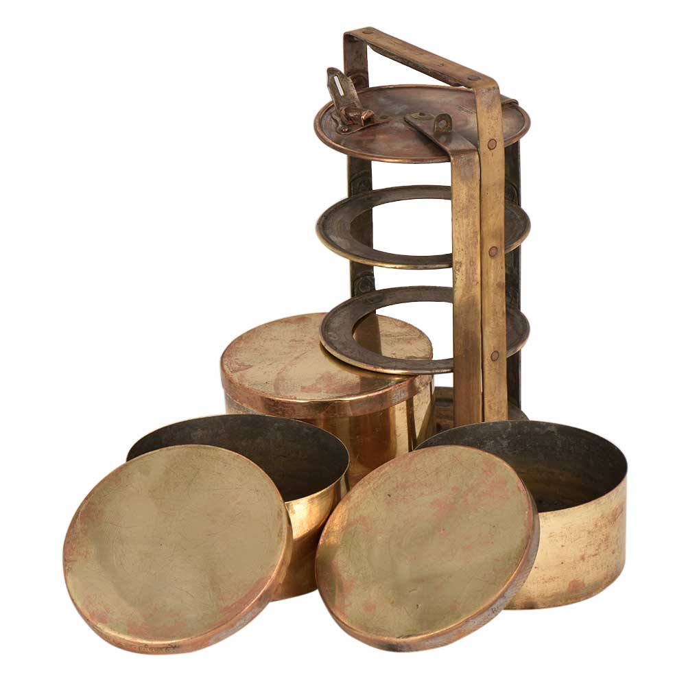 Functional Brass Tiffin Box With Three Containers And Thick Locking Frame